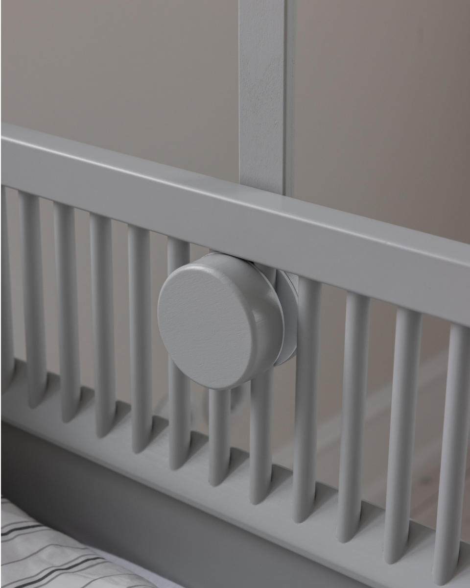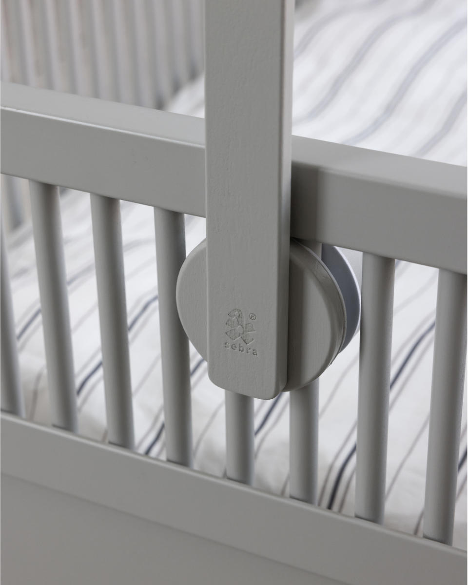 De houder is zeer eenvoudig in gebruik: hij wordt met een paar handelingen stevig vastgeklemd tussen de spijlen van het Sebra Junior & Grow bed of vrijwel elk ander ledikant. Een bijzonder detail zijn de gevoerde schijven op de bevestigingspunten. Deze zorgen voor een stabiele grip en beschermen tegelijkertijd het hout van het bed tegen krassen en afdrukken.