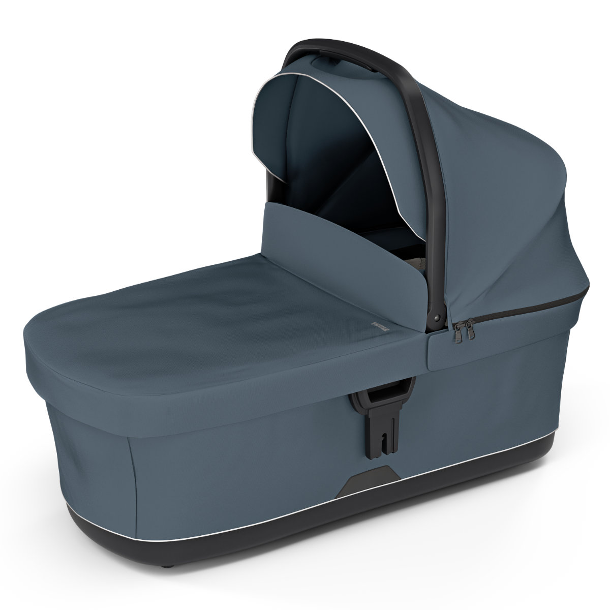 De Thule reiswieg verandert je Thule kinderwagen in een handomdraai in een volwaardige wagen voor pasgeborenen. Dankzij het eenvoudige klikmechanisme bevestig je de wieg veilig en snel – ideaal voor wandelingen op elk terrein.