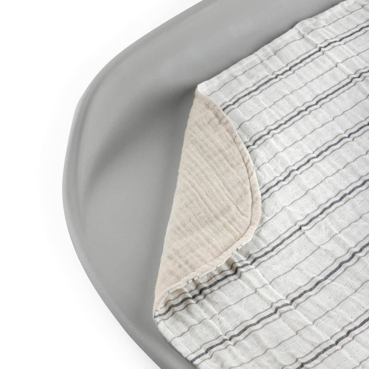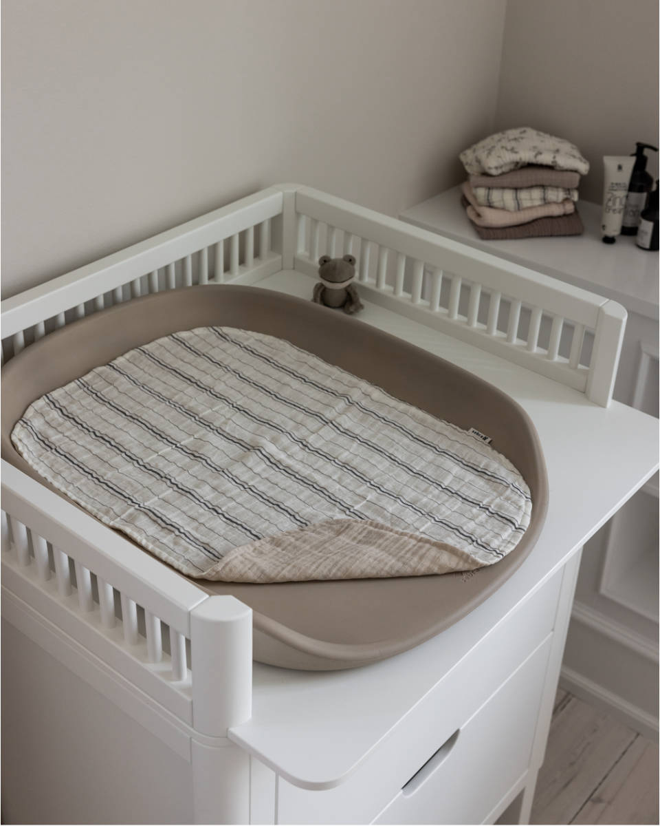 Leg de mousseline mat eenvoudig op je Sebra Verschoonmat om hem bijzonder zacht en gezellig te maken. Omdat hij draaibaar is, kun je beide zijden gebruiken en zo langer profiteren van zijn zachtheid. Bovendien is hij niet alleen inzetbaar tijdens het verschonen: Hij dient ook als onderlegger in de kinderwagen of als klein dekentje voor tijdens dutjes.