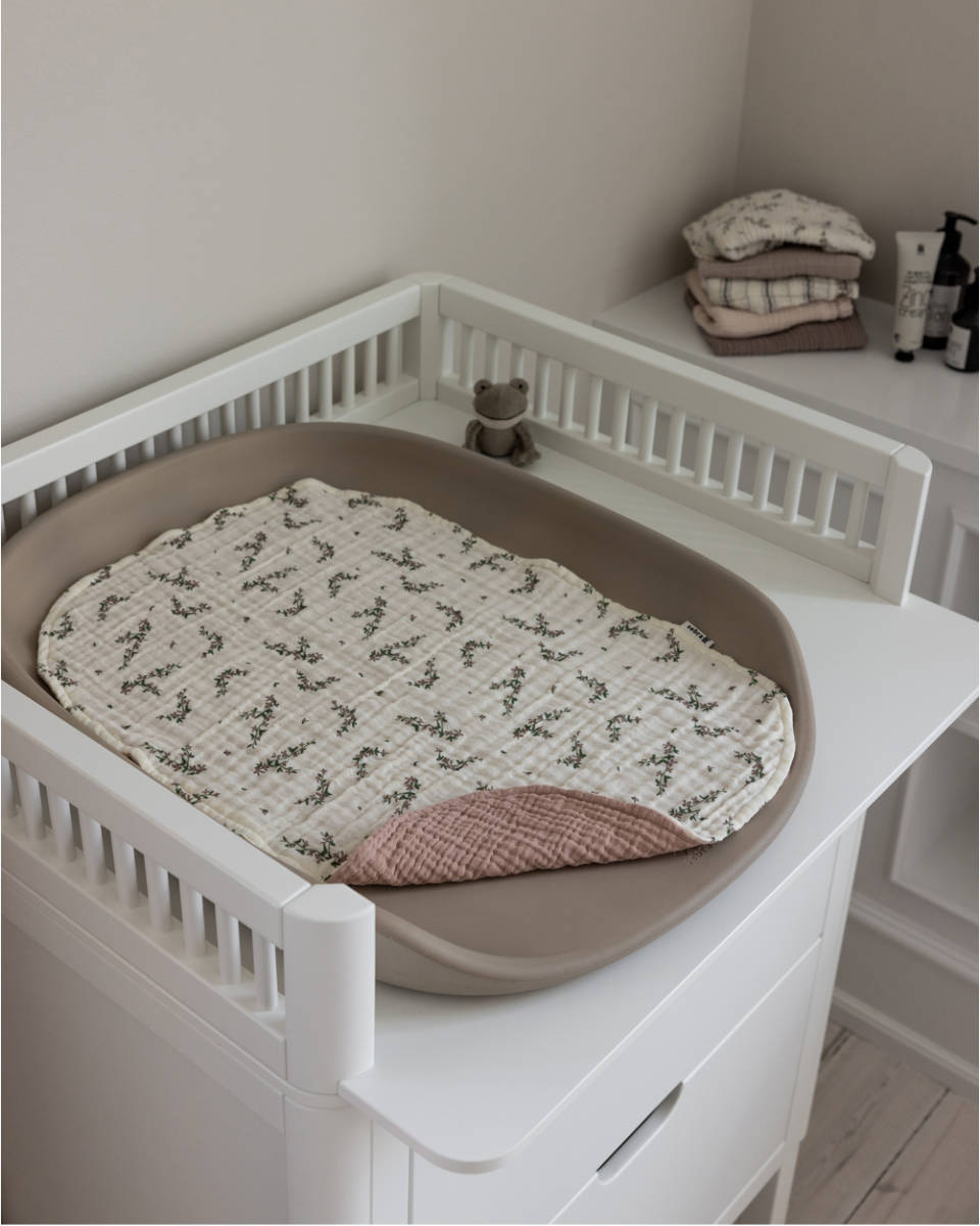 Leg de mousseline mat eenvoudig op je Sebra Verschoonmat om hem bijzonder zacht en gezellig te maken. Omdat hij draaibaar is, kun je beide zijden gebruiken en zo langer profiteren van zijn zachtheid. Bovendien is hij niet alleen inzetbaar tijdens het verschonen: Hij dient ook als onderlegger in de kinderwagen of als klein dekentje voor tijdens dutjes.