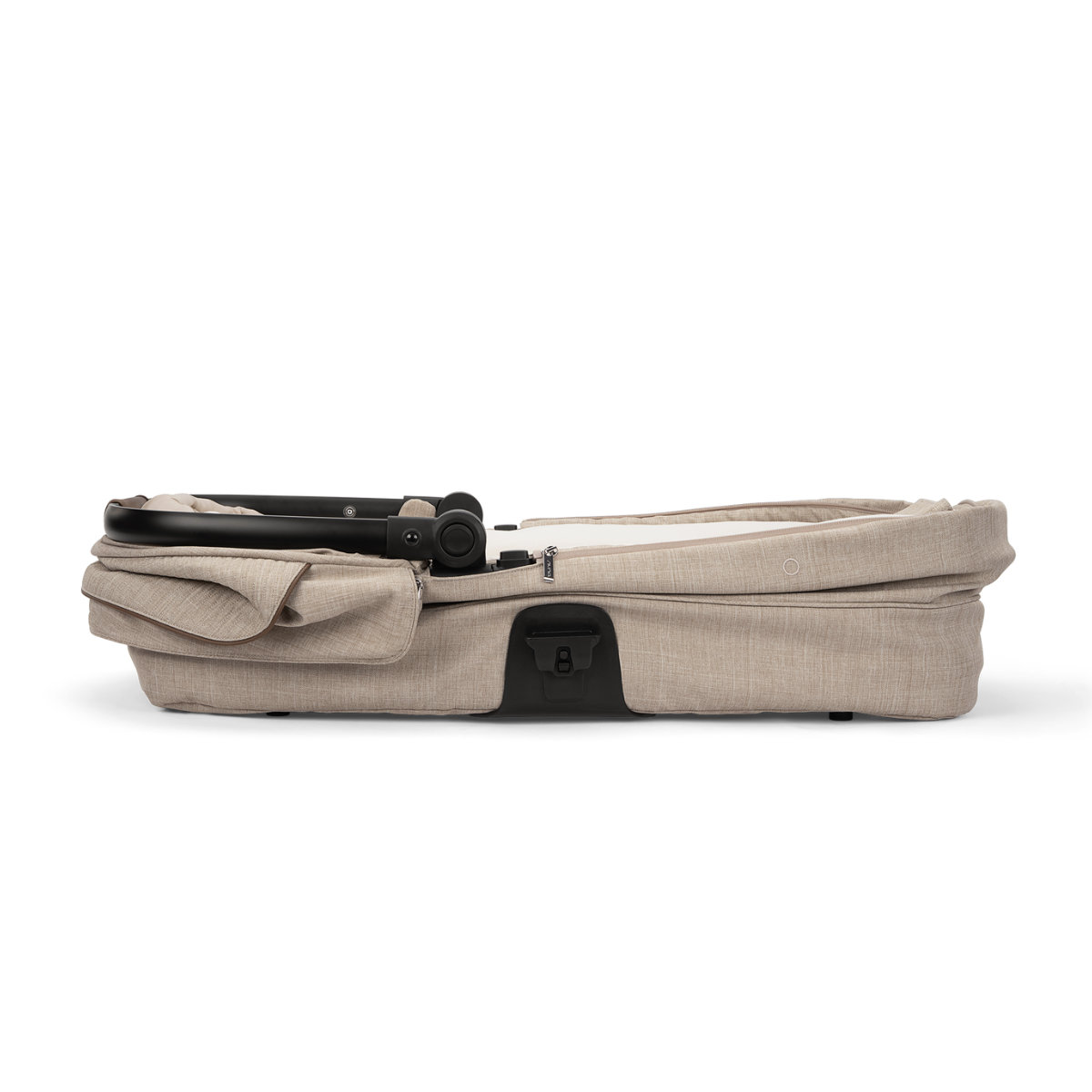 De MIXX Next reiswieg is meer dan alleen een opzetstuk. Dankzij de geïntegreerde memory-knoppen kun je de wieg moeiteloos met slechts één hand van het frame halen – perfect als je even geen hand vrij hebt. Of je nu thuis bent of op reis, hij toont zijn ware kracht: hij kan plat worden opgevouwen voor transport, waardoor je kostbare ruimte bespaart in de kofferbak of de gang.