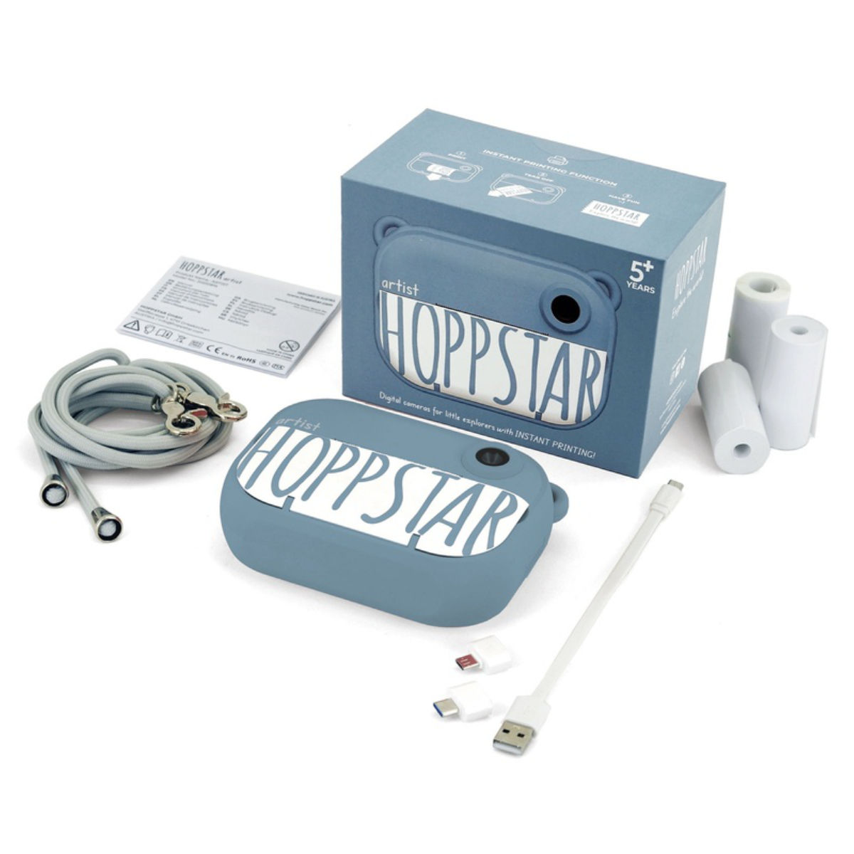 De camera is veilig voor kinderen, vrij van PVC, ftalaten en BPA. De Hoppstar Artist voldoet aan de hoogste veiligheidsnormen en is gecertificeerd met CE, EN71, RoHS, CCC en MA.