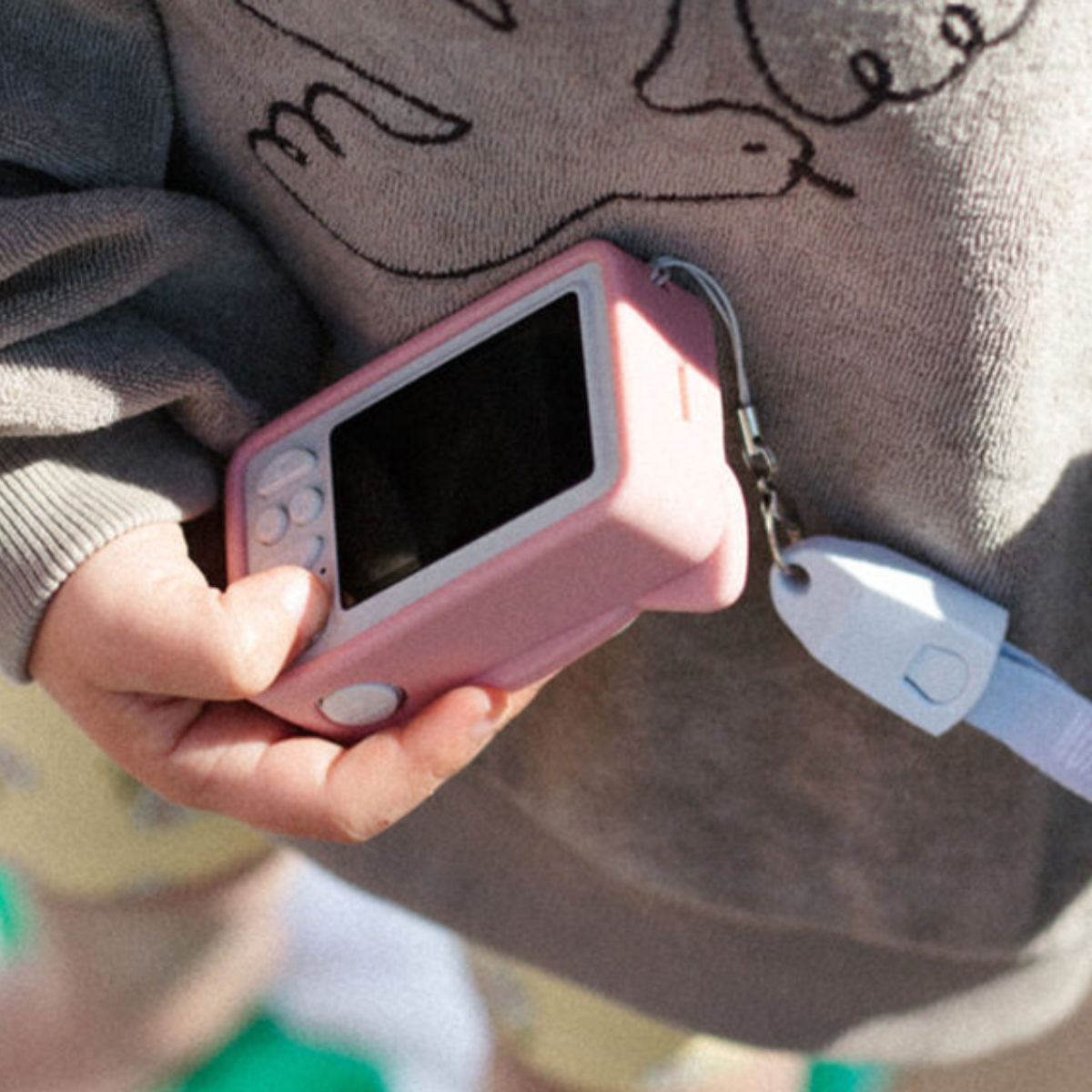 De Hoppstar Rookie kindercamera valt op door zijn gebruiksvriendelijke en robuuste ontwerp. Uitgerust met grote knoppen, maakt het kinderen gemakkelijk om het te bedienen. De afneembare siliconen hoes beschermt tegen vallen en biedt tegelijkertijd een stevige grip.