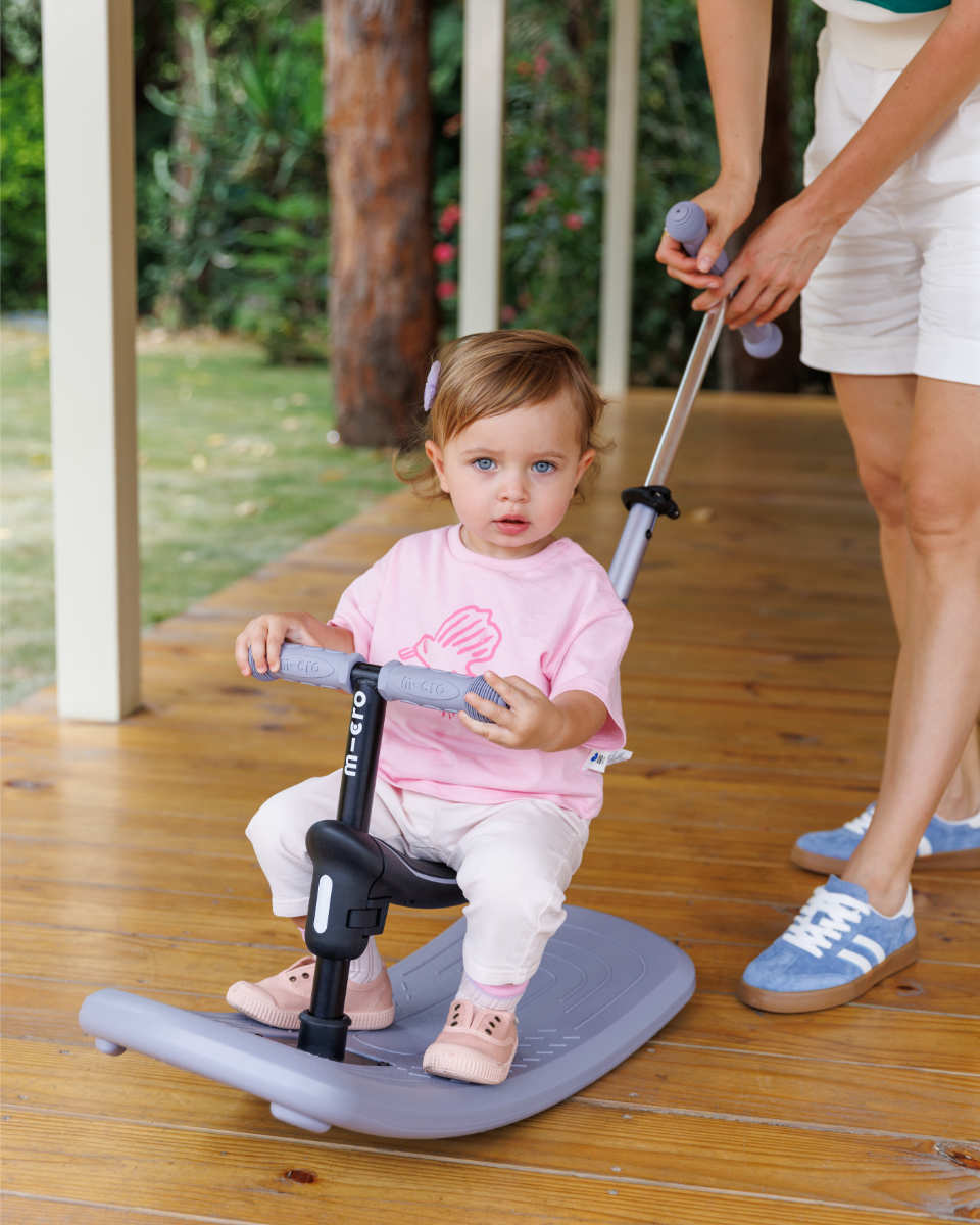 Het hart van het systeem is de enorme veelzijdigheid. Je kind begint als wip om spelenderwijs balans te leren. Later wordt het systeem een ride-on met ergonomisch zitje, waarbij je je kind dankzij de verstelbare duwstang comfortabel kunt ondersteunen. Zodra je kleine ontdekkingsreiziger er klaar voor is, wordt het zitje simpelweg verwijderd – en heb je een volwaardige Deluxe Step. Het hoogtepunt: de LED-wielen zorgen niet alleen voor enthousiasme, maar laten de step in de schemering ook oplichten!