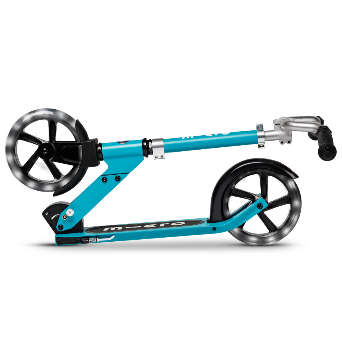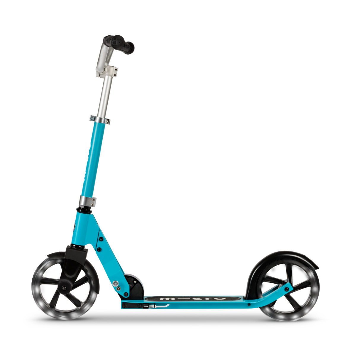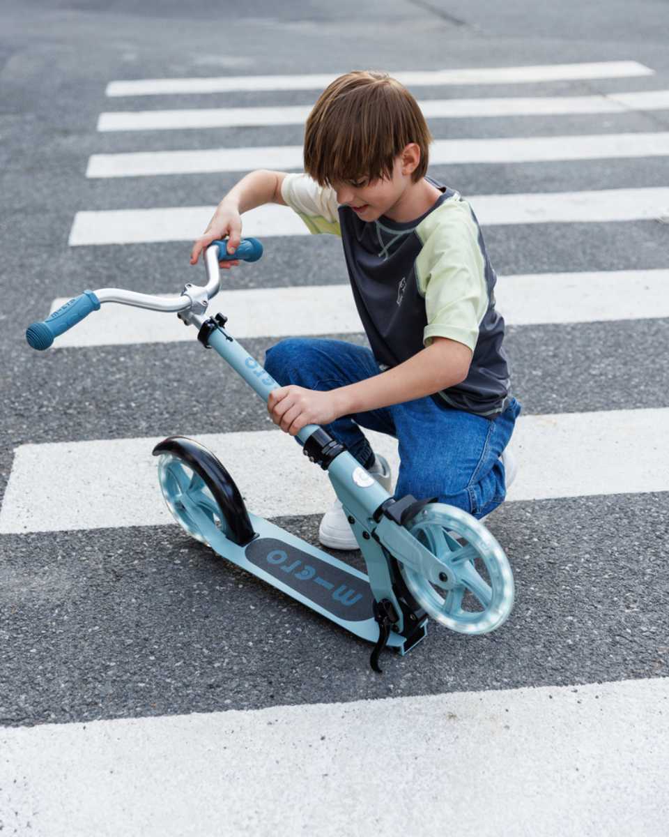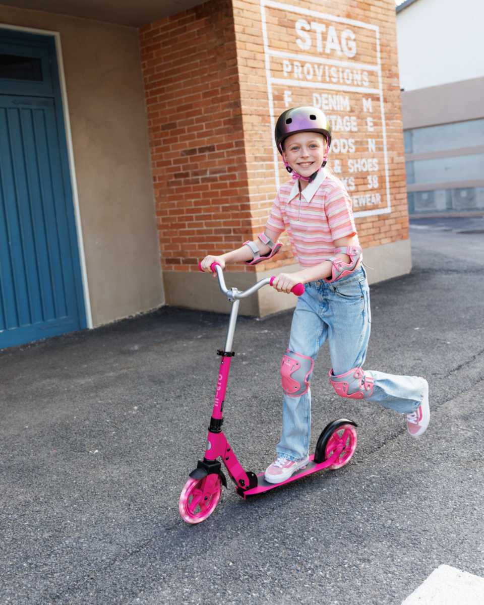Het hart van de Micro Cruiser LED zijn de 200 mm grote wielen. Ze vangen oneffenheden in het asfalt moeiteloos op en zorgen voor een rustige rit. Het bijzondere: de geïntegreerde LED-lampjes in de wielen lichten tijdens het rijden op door inductie. Dit ziet er niet alleen cool uit, maar verhoogt ook de zichtbaarheid en veiligheid van je kind in de schemering – volledig zonder batterijen!