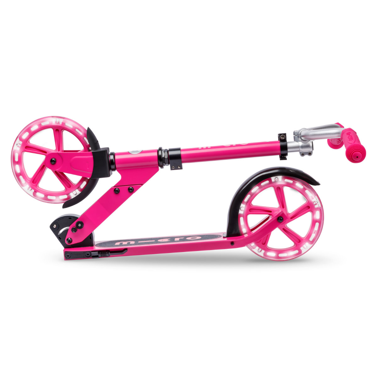 Het hart van de Micro Cruiser LED zijn de 200 mm grote wielen. Ze vangen oneffenheden in het asfalt moeiteloos op en zorgen voor een rustige rit. Het bijzondere: de geïntegreerde LED-lampjes in de wielen lichten tijdens het rijden op door inductie. Dit ziet er niet alleen cool uit, maar verhoogt ook de zichtbaarheid en veiligheid van je kind in de schemering – volledig zonder batterijen!