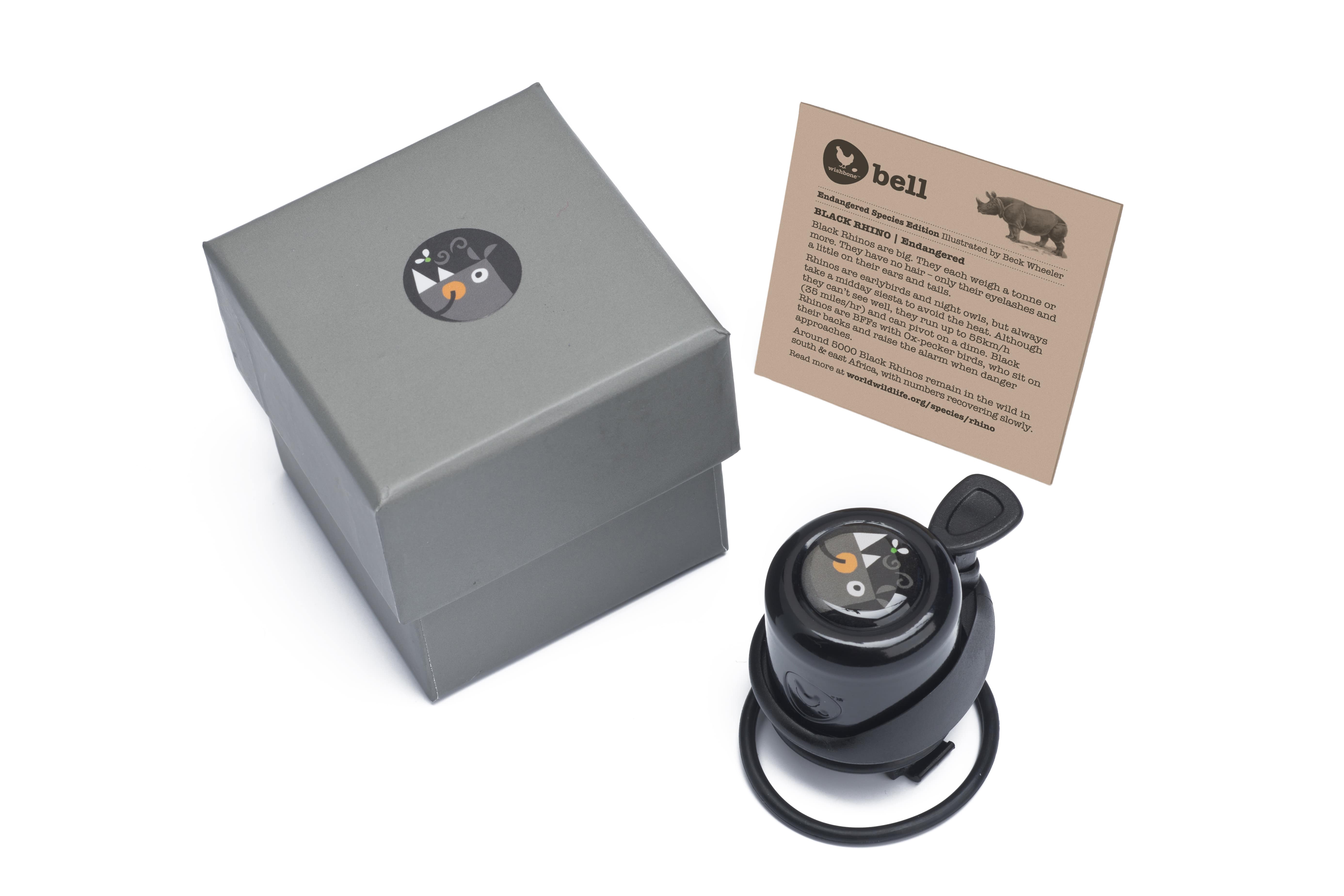 Elke fietsbel wordt geleverd in een mooie geschenkdoos en bevat een informatieve kaart over het bedreigde diersoort die afgebeeld is. De montage is heel eenvoudig en vereist geen gereedschap.