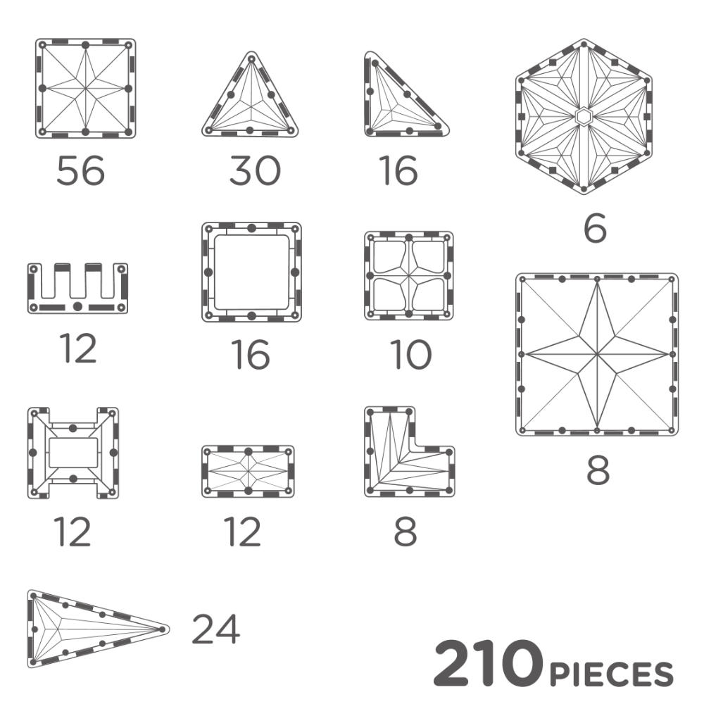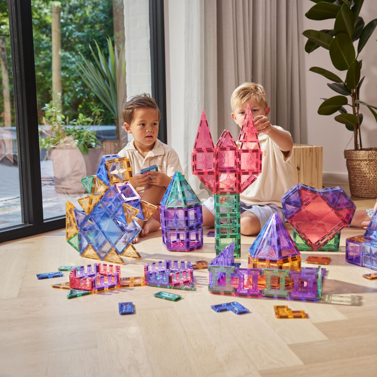 Met maar liefst 210 onderdelen behoort dit pakket tot de grootste sets van Cleverclixx. Het biedt volop ruimte voor samenwerking en geeft kinderen de kans om spectaculaire projecten te realiseren. Van kastelen en huizen tot bruggen, torens of hele steden – alles kan. Bovendien is de set volledig compatibel met andere Cleverclixx-producten en merken zoals Connetix en Magna-Tiles, waardoor je de bouwmogelijkheden eindeloos kunt uitbreiden.