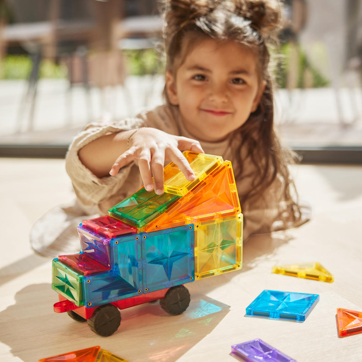 De Cleverclixx Auto-Bouwset in Felle Kleuren – 25 Delige Magnetische Bouwstenen is ideaal voor kinderen die dol zijn op voertuigen en creatief bouwen. Compact, veelzijdig en vol speelplezier: met deze set breng je beweging in de wereld van magnetisch bouwen. Van racewagens tot fantasievoertuigen – de creativiteit van je kind kan alle kanten op.