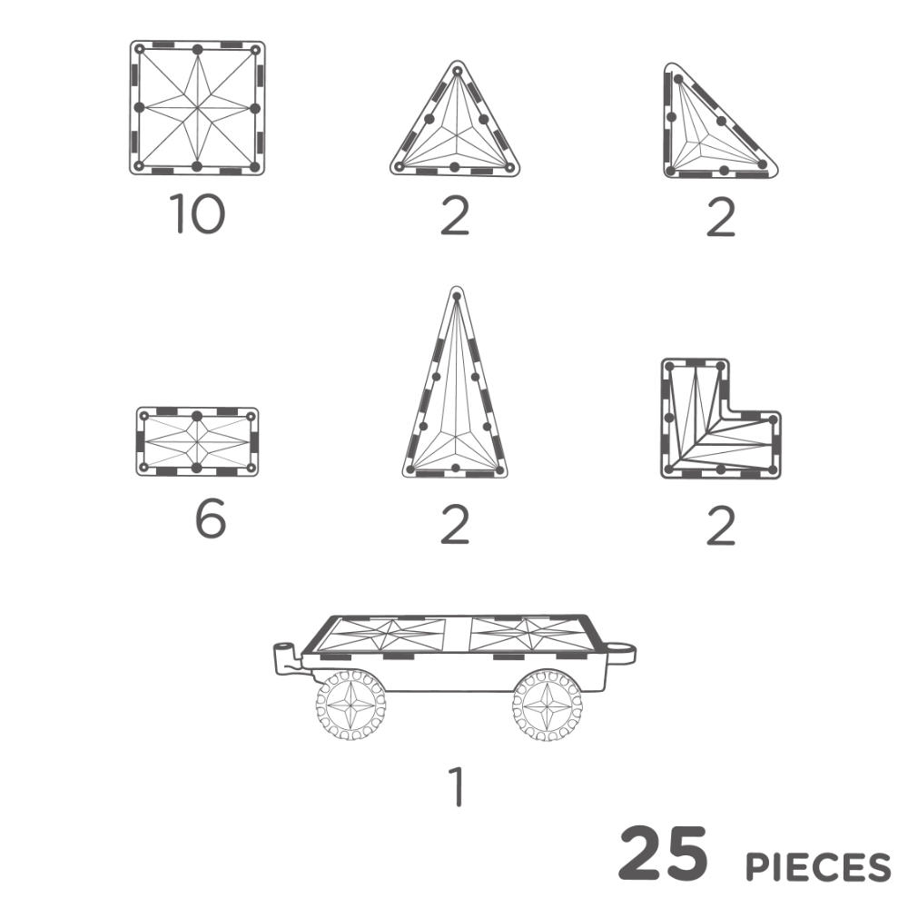 - 25 kleurrijke onderdelen: perfect om voertuigen en andere creaties te bouwen.