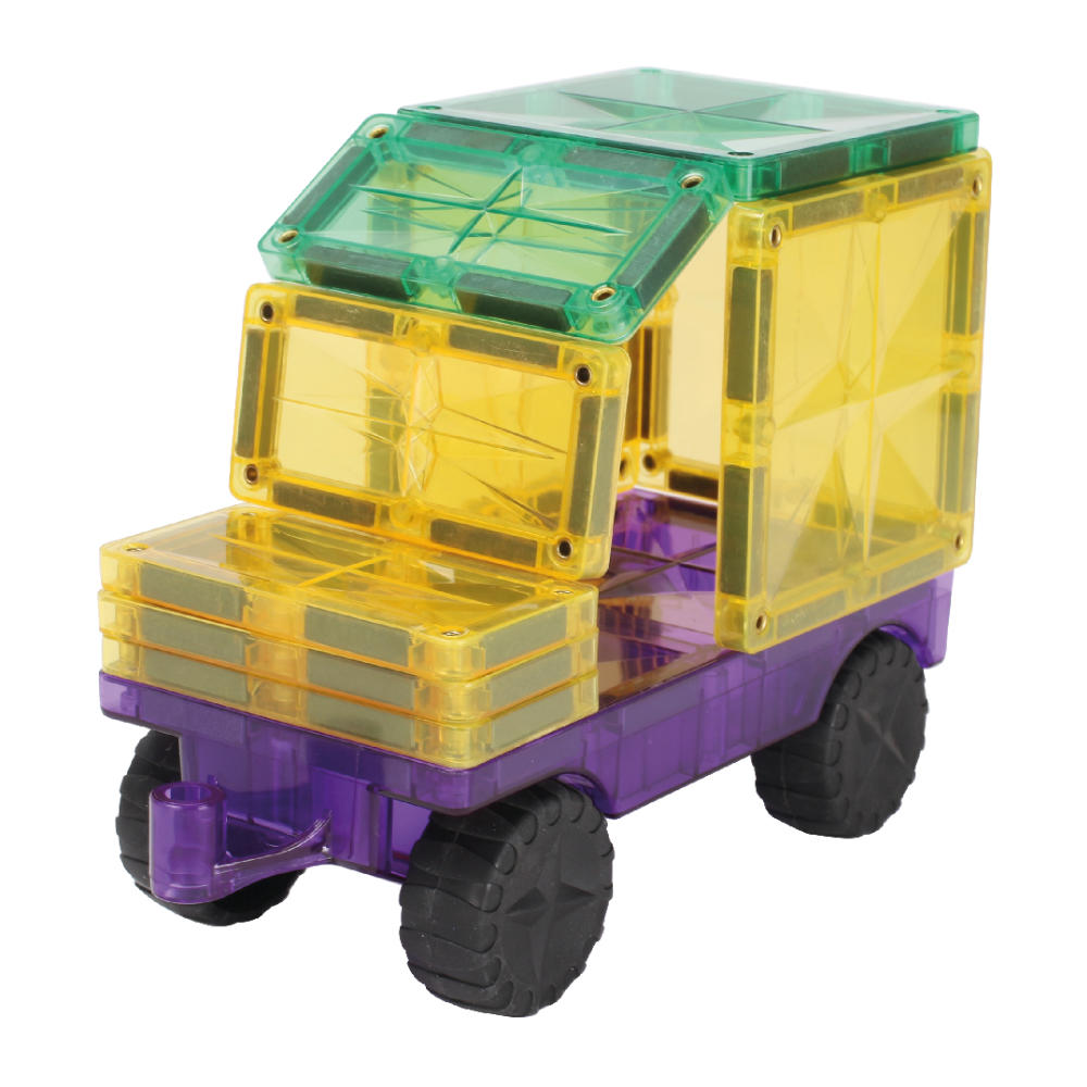 Met de Cleverclixx Auto-Bouwset in Felle Kleuren – 25 Delige Magnetische Bouwstenen kan je kind zijn of haar eigen voertuigen creëren. Dankzij de stevige autobasis en de kleurrijke magnetische bouwstenen ontstaan er racewagens, vrachtwagens of fantasievoertuigen. Of je nu de bijgevoegde handleiding volgt of volledig uit de losse pols bouwt, deze set combineert bouwplezier met spannend speelplezier op wielen.