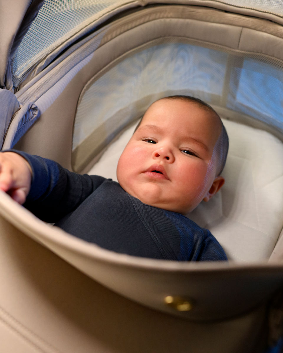 Vanaf de eerste dag ontspannen onderweg: de Maxi-Cosi Cabin Reiswieg combineert eersteklas ligcomfort met een uniek compact vouwmechanisme. Het bijzondere: hij blijft gewoon op het Fame Cabin kinderwagenframe (apart verkrijgbaar) bevestigd en vouwt in seconden tot een slank pakket – ideaal voor de stad, op reis en bij weinig opbergruimte.