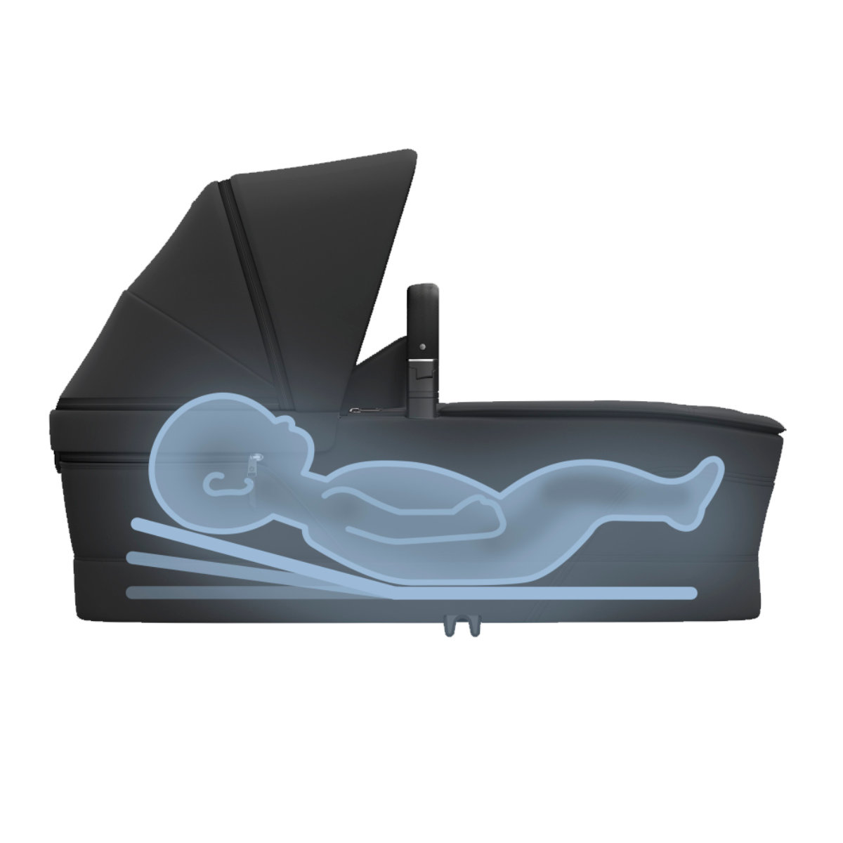 • Overstap: Wanneer de reiswieg te klein wordt (ca. vanaf 6 maanden of 9 kg), schakel je over naar de Fame Cabin zitting – eerst in de platte ligstand tot je kind zelfstandig kan zitten.
