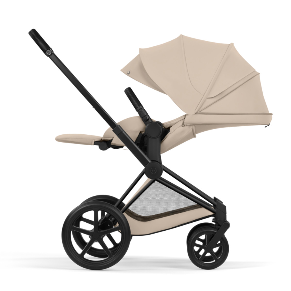 De Cybex Priam 5 groeit met je kind mee. Je wisselt eenvoudig tussen reiswieg, autostoel en zitje. De zitting is omkeerbaar: je kind kan naar jou kijken of de wereld ontdekken.