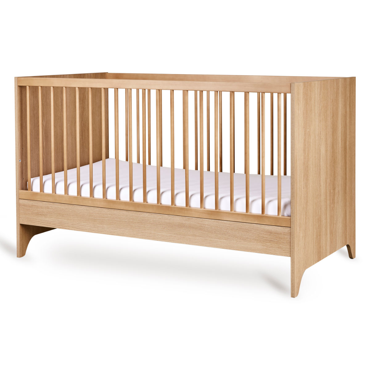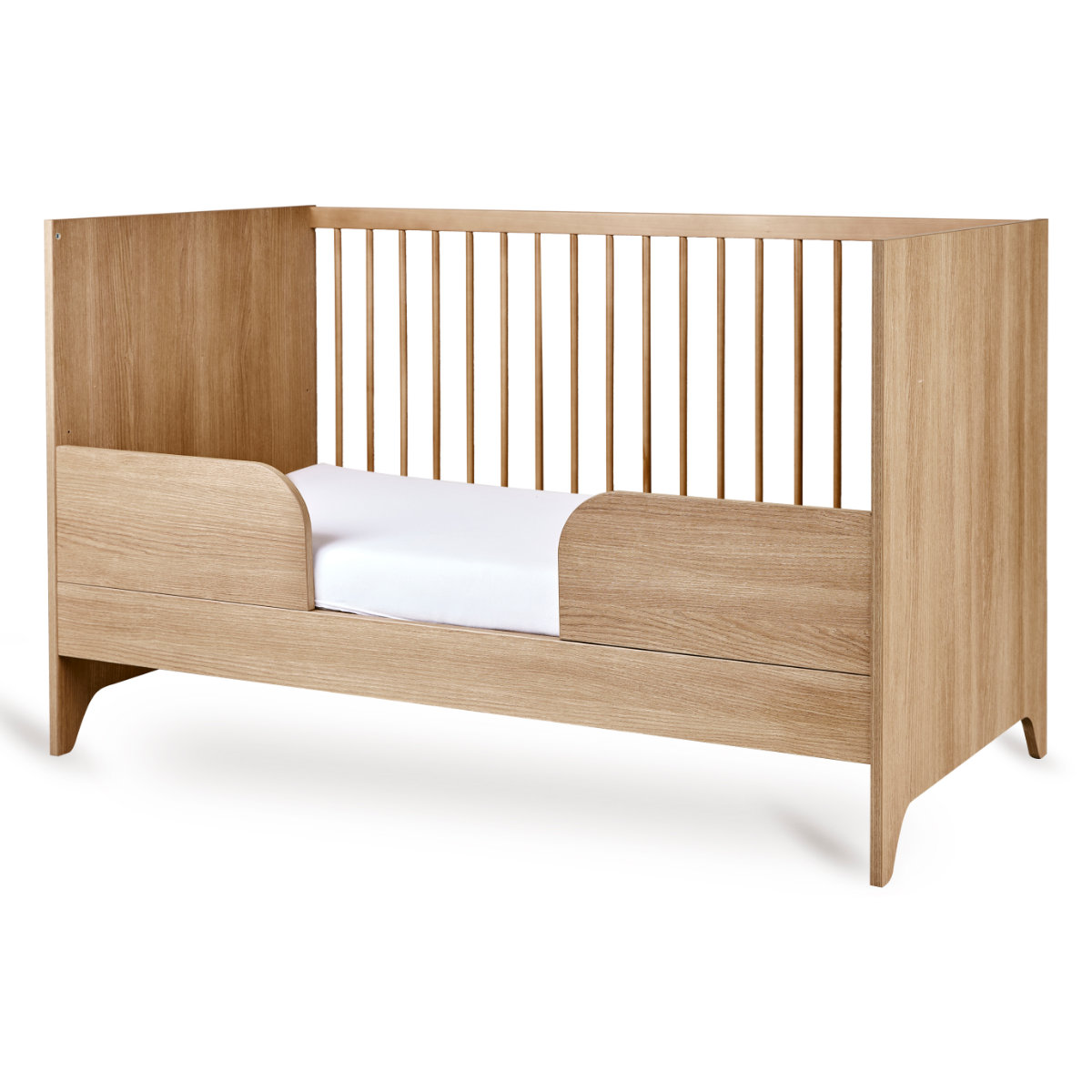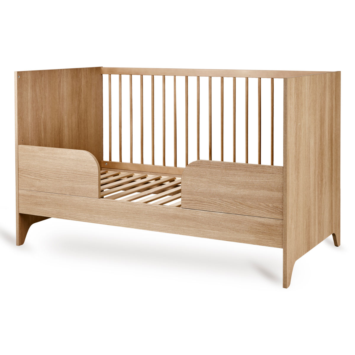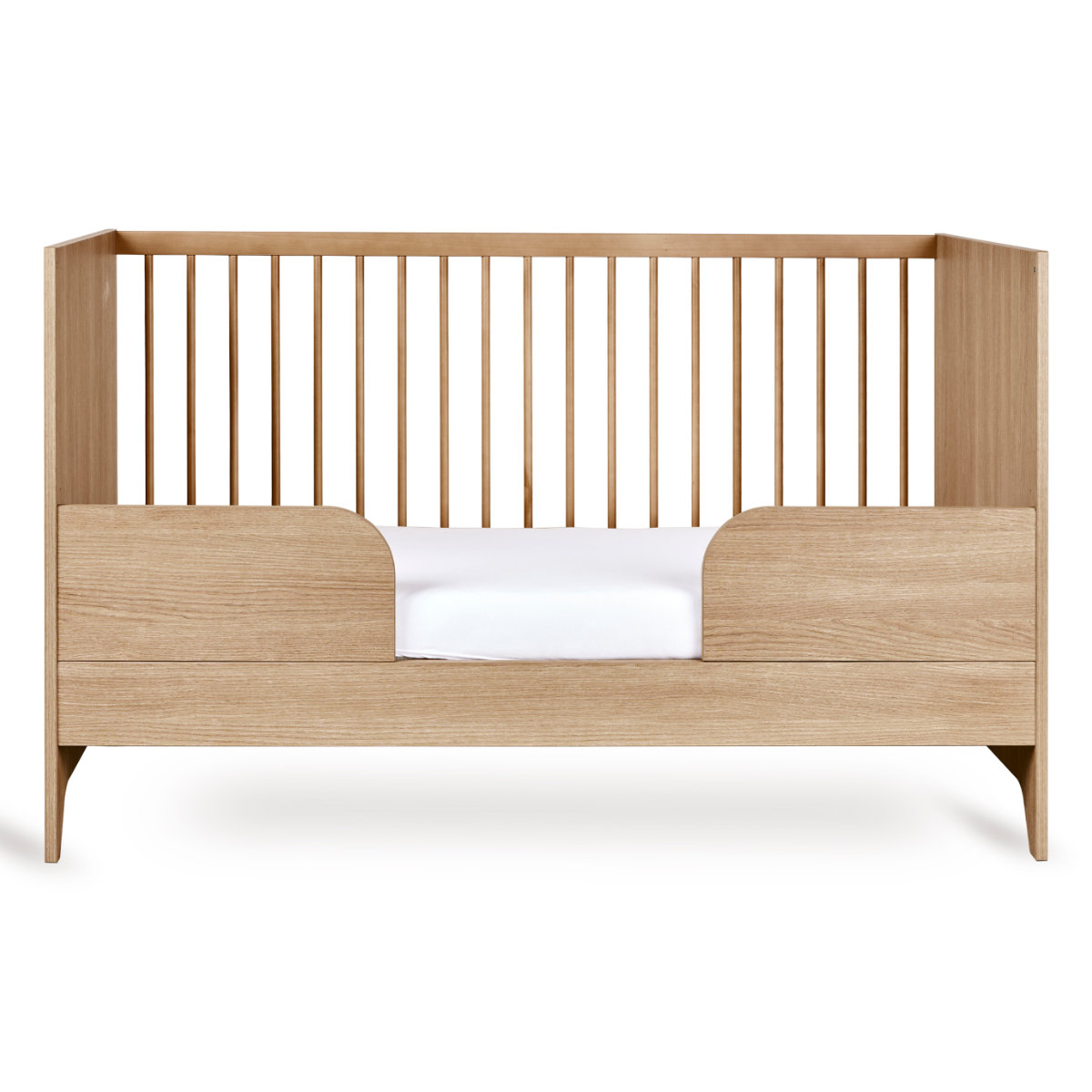 Het kleinere bed creëert vanaf de geboorte een veilige, knusse omgeving. Met de geïntegreerde valbeveiliging bouw je het eenvoudig om tot een charmant, halfopen kinderbed.