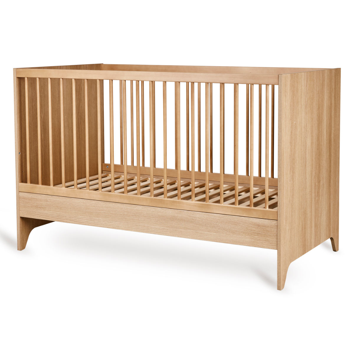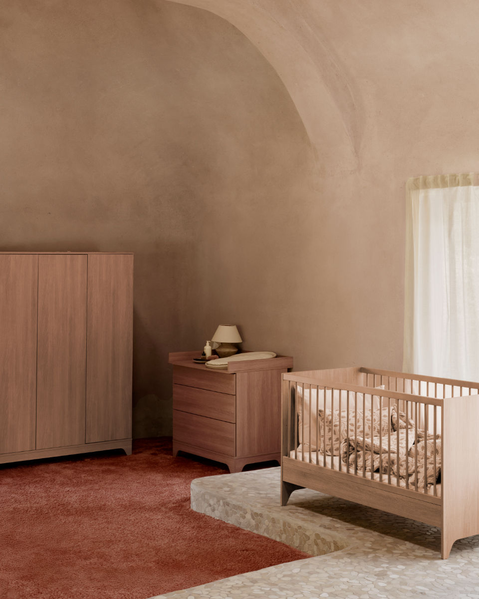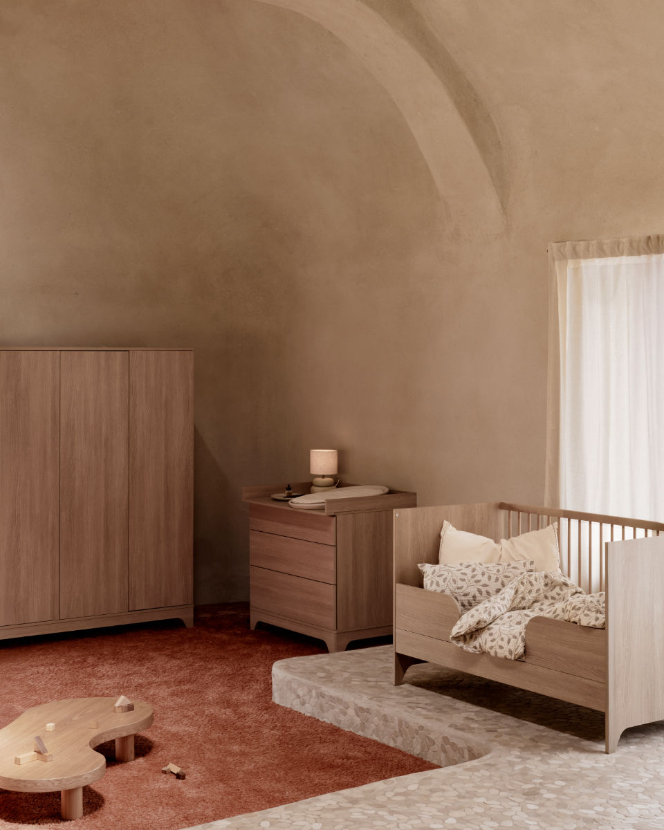 Het Tsugi babybed is verkrijgbaar in 120 × 60 cm en 140 × 70 cm. Beide modellen kunnen later worden omgebouwd tot een gezellig, halfopen peuterbed – ideaal om te spelen, lezen of ontspannen.