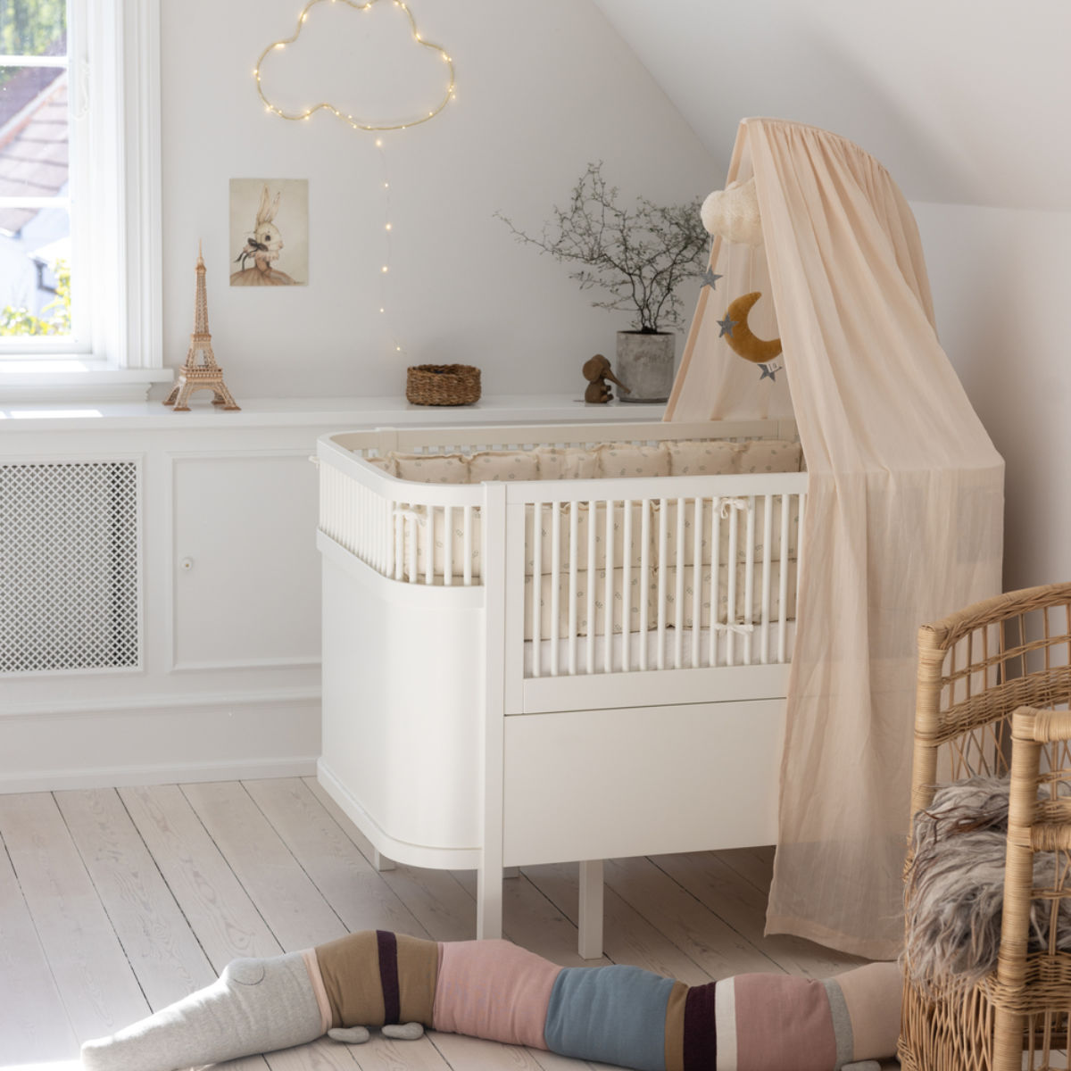 De Sebra Sky Hemel valt op door zijn lichte en luchtige stof. Het doordachte dobby-weefsel zorgt voor een optimale luchtcirculatie, wat een aangenaam en gezond slaapklimaat voor je baby bevordert. De stof is bovendien duurzaam en eenvoudig te onderhouden, zodat je hem probleemloos op 40°C kunt wassen wanneer dat nodig is.