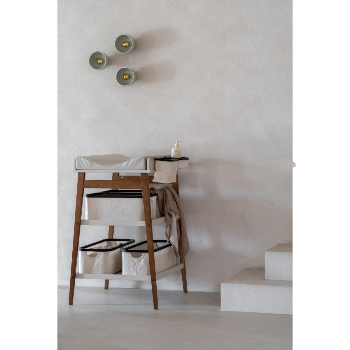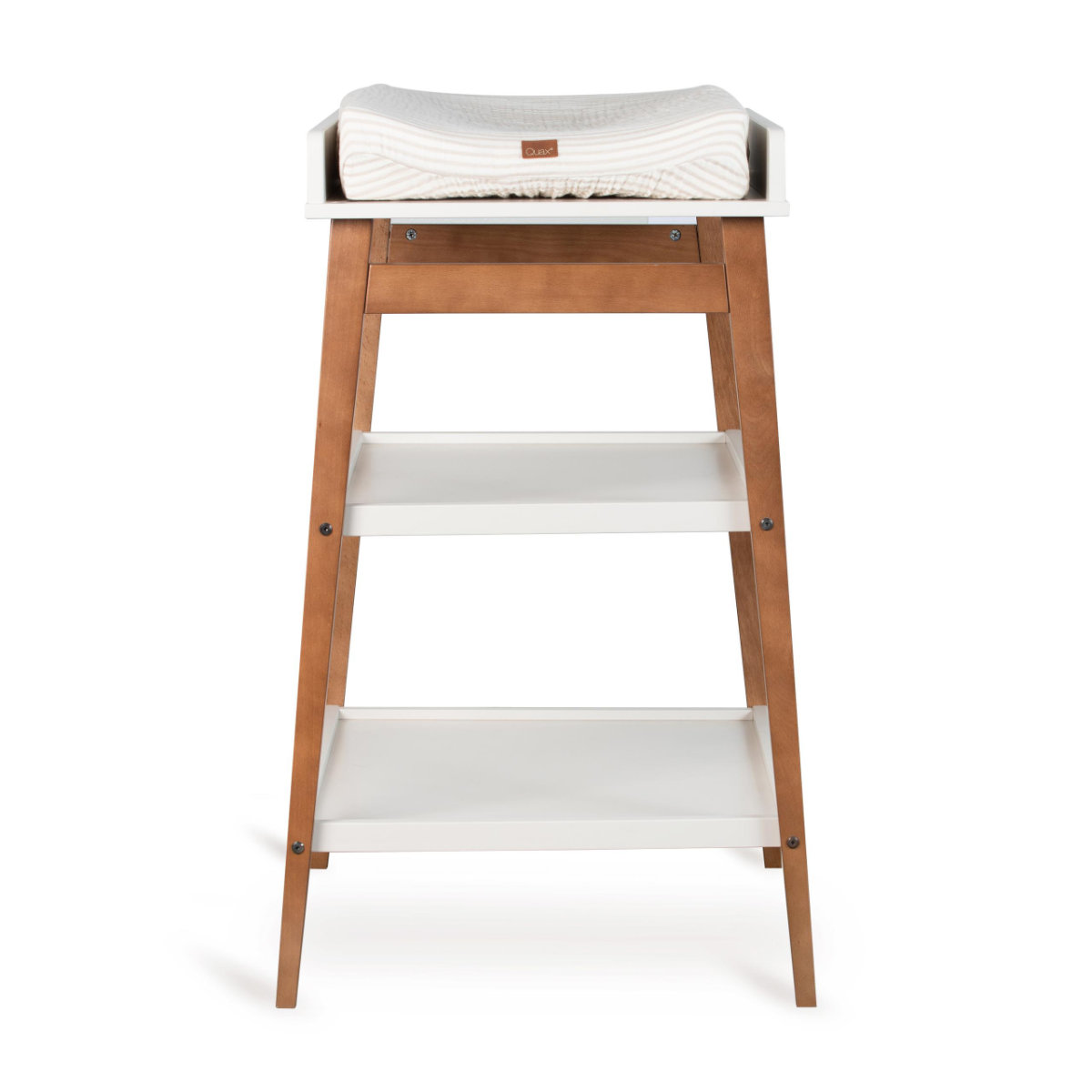 Met de praktische luiertafel van Quax heeft u babykleertjes en verzorgingsproducten altijd binnen handbereik. De luiertafel heeft 2 schappen waar je verschillende dingen op kunt leggen die je nodig hebt om de baby aan te kleden/schoon te maken. De luiertafel neemt niet veel ruimte in beslag, dus is hij ideaal voor een kleine slaapkamer of badkamer.