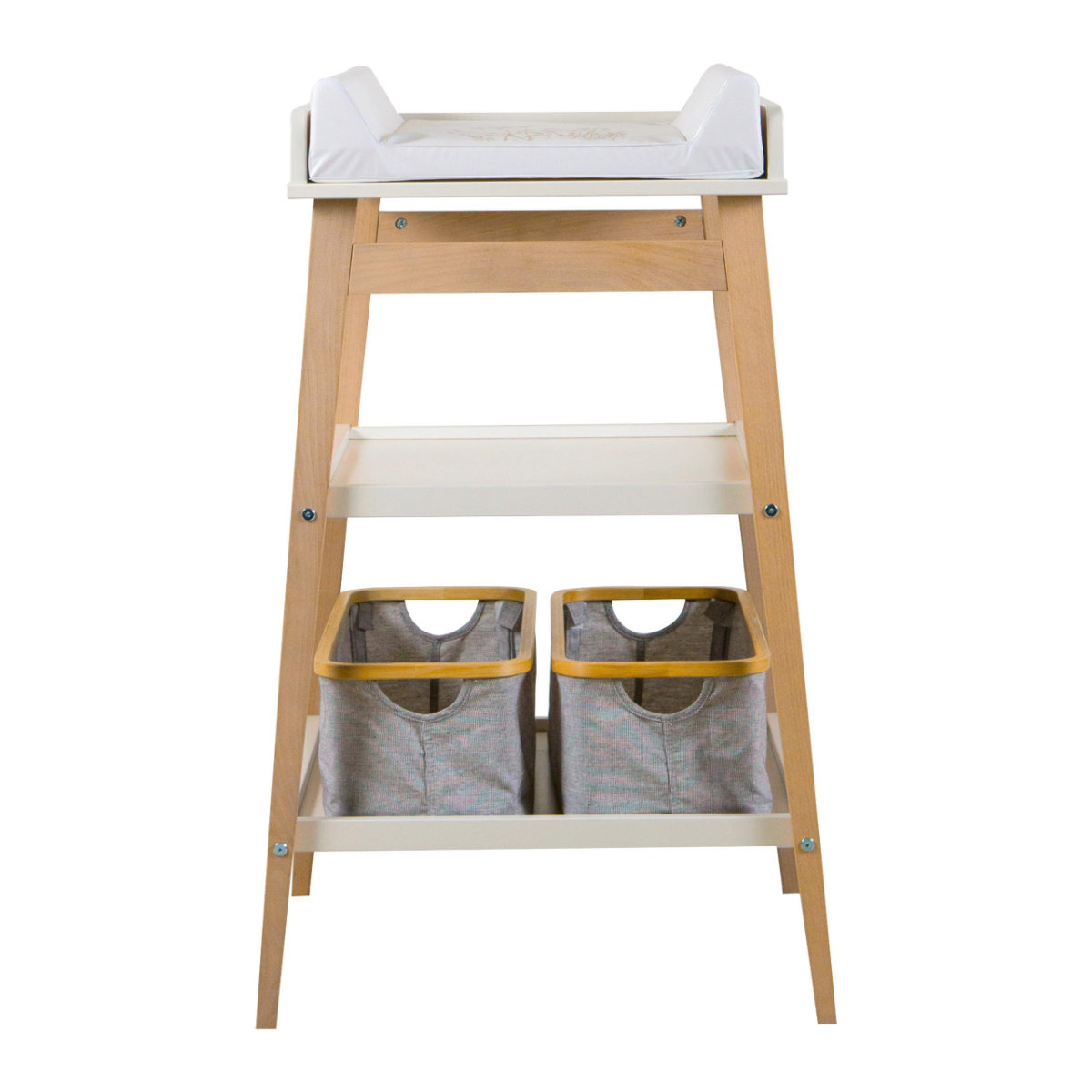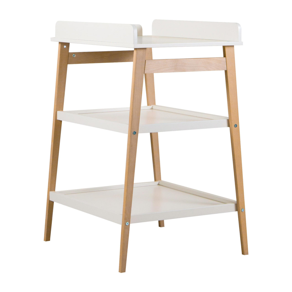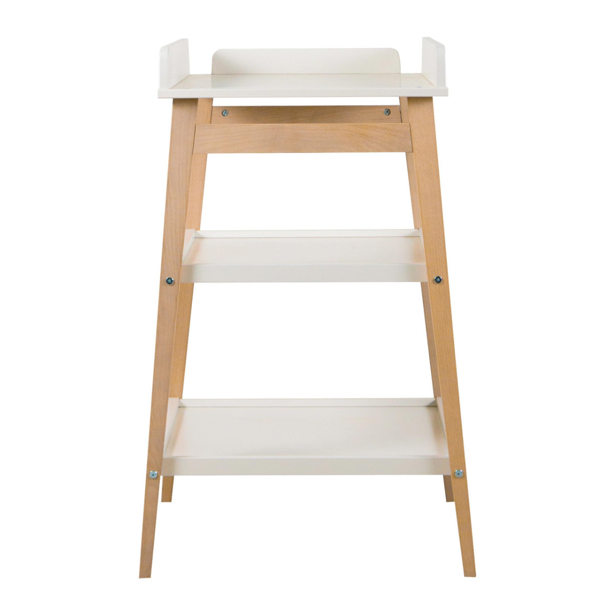 Met de praktische luiertafel van Quax heeft u babykleertjes en verzorgingsproducten altijd binnen handbereik. De luiertafel heeft 2 schappen waar je verschillende dingen op kunt leggen die je nodig hebt om de baby aan te kleden/schoon te maken. De luiertafel neemt niet veel ruimte in beslag, dus is hij ideaal voor een kleine slaapkamer of badkamer.