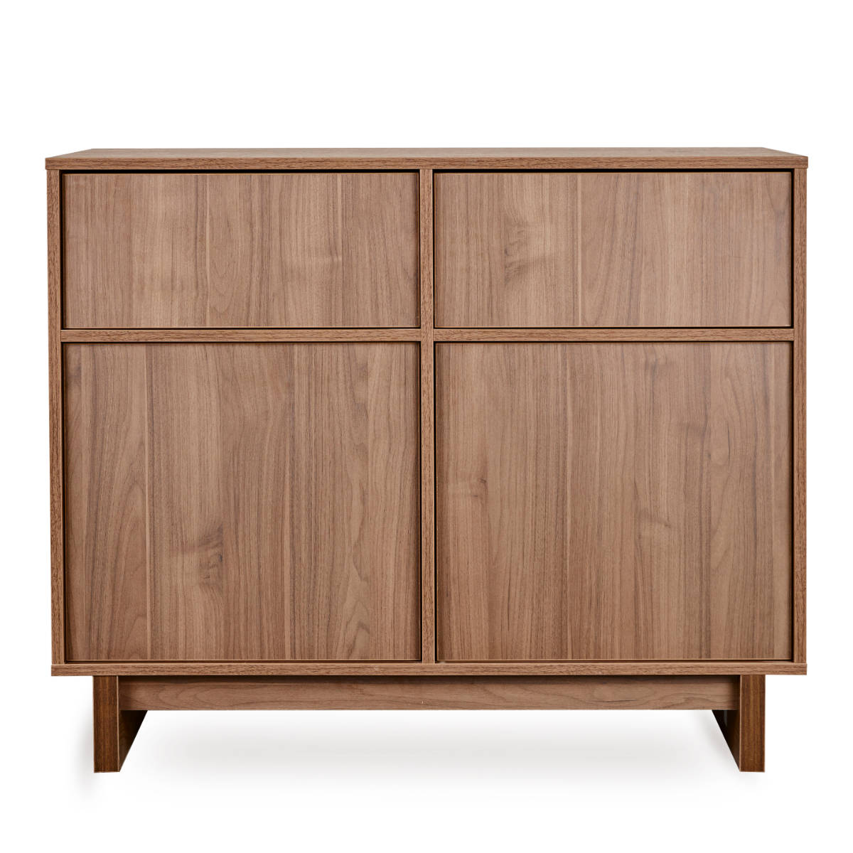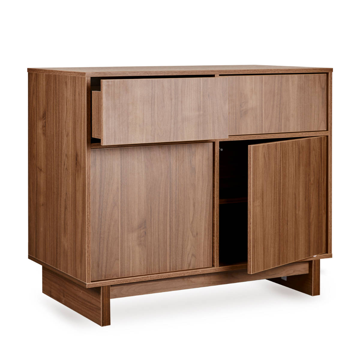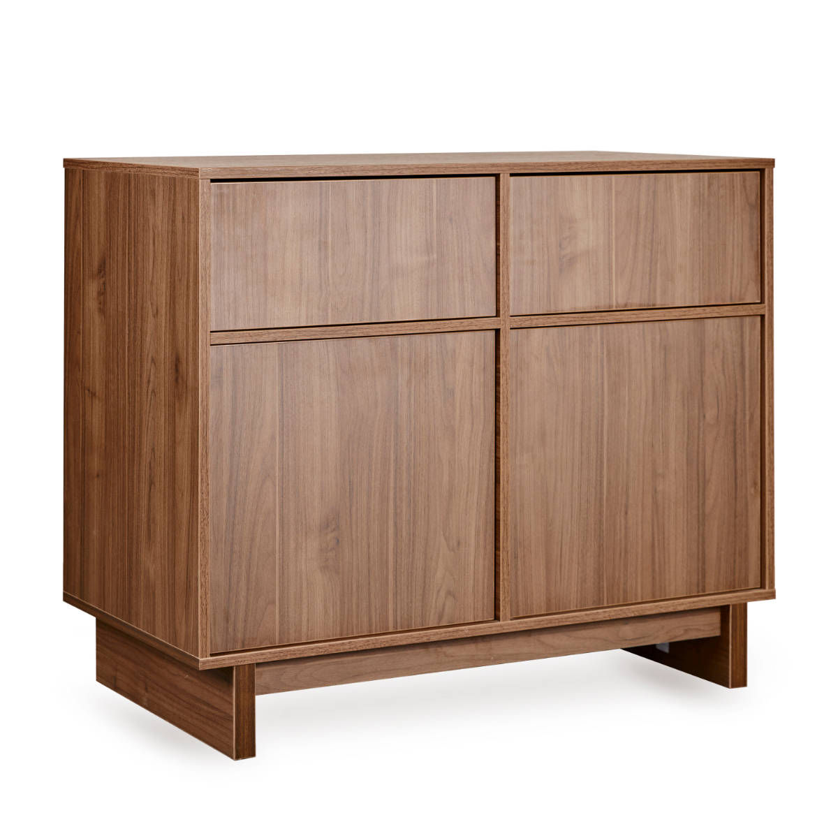 Met de klassieke afmetingen van 110 × 58 × 94 cm biedt deze commode royaal opberggemak. Achter de twee deuren berg je grotere spullen netjes op, terwijl de twee ruime push-to-open lades ideaal zijn voor kleding, luiers en andere benodigdheden. Alles blijft overzichtelijk en direct bereikbaar.