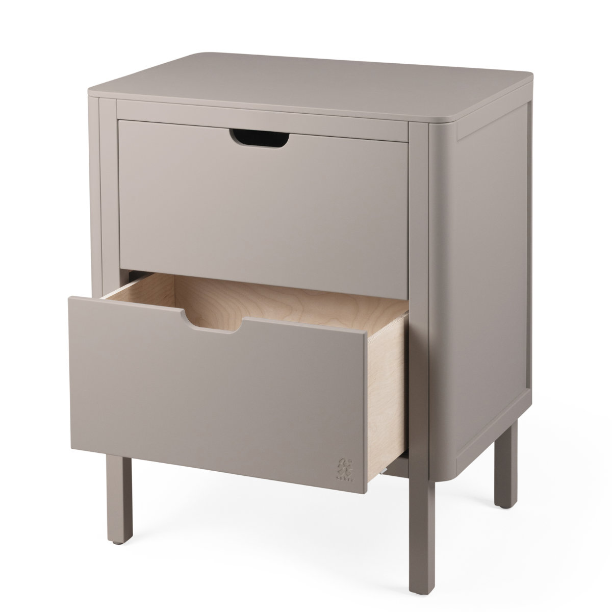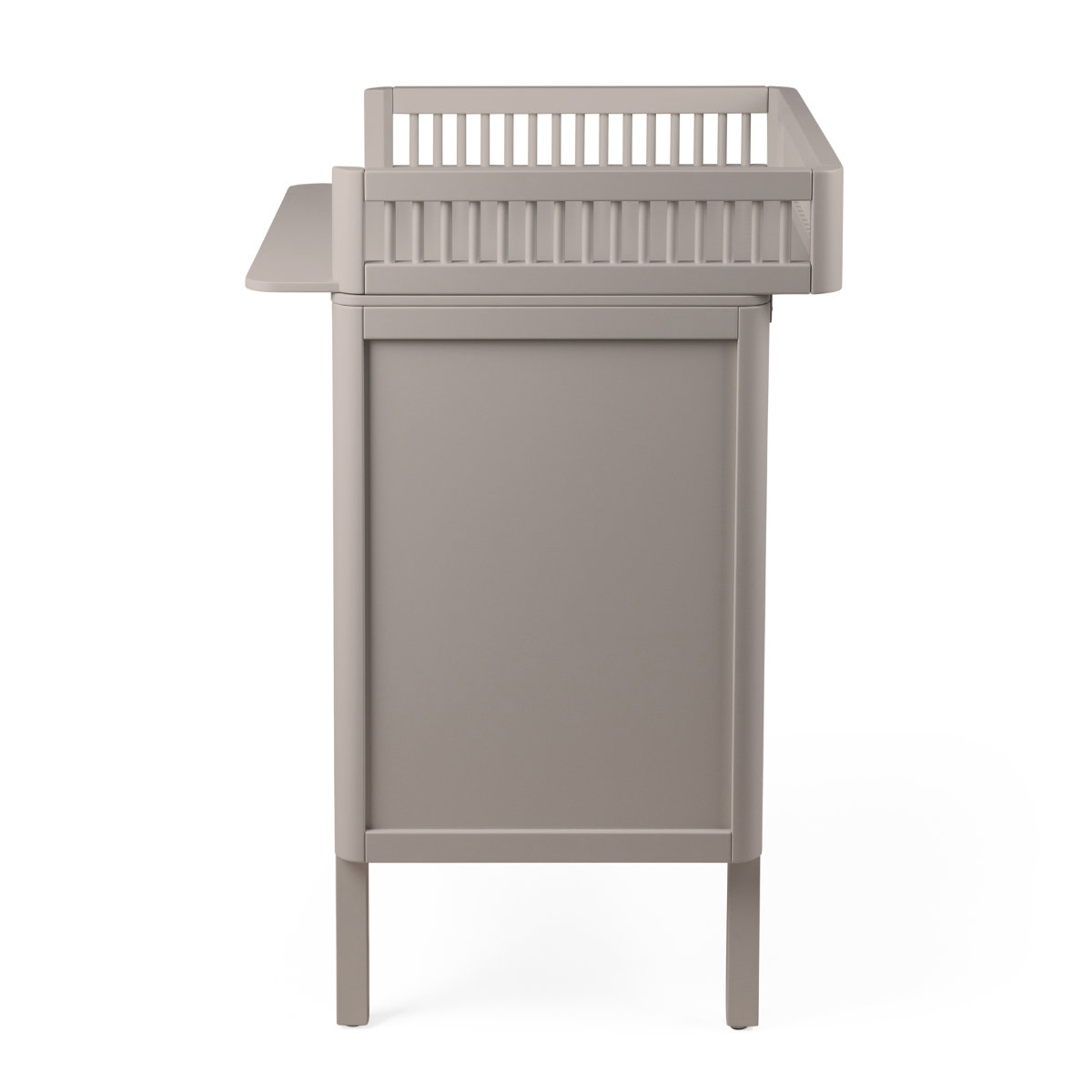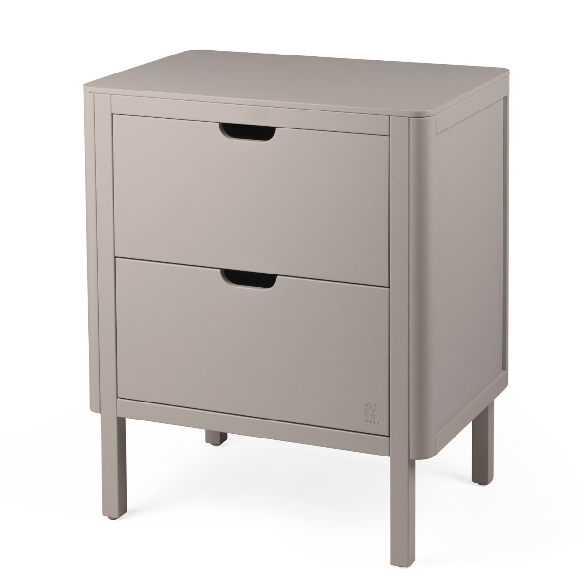 De Sebra commode is een elegant, functioneel en Deens vormgegeven 2-in-1 meubelstuk dat wordt geleverd met een commode, een verschoonblad en respectievelijk twee lades of planken met deuren, in wit of grijs.