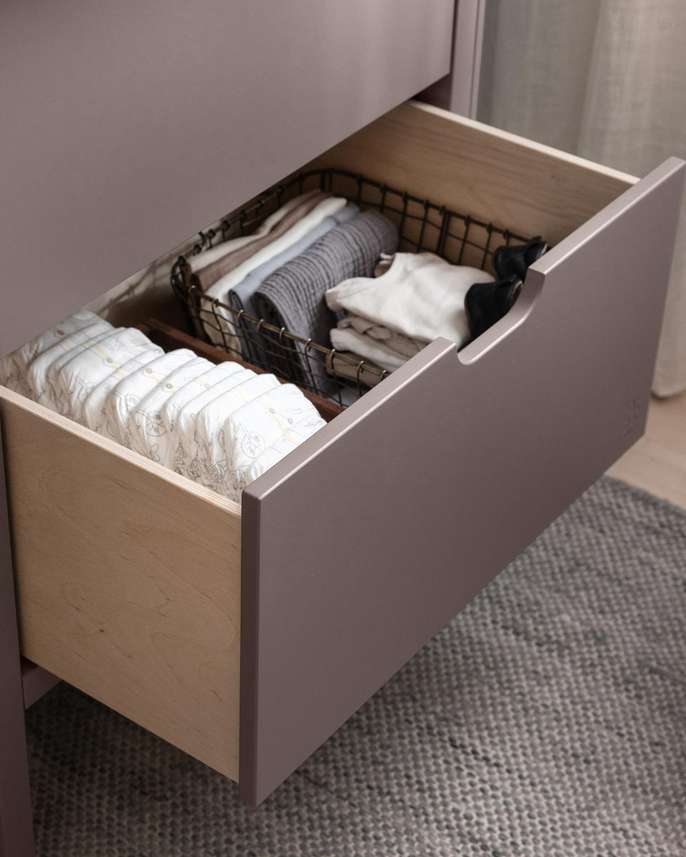 De luiertafel is ontworpen met een Scandinavische en tijdloze uitstraling die harmonieert met de andere meubelen uit Sebra Interior's klassieke meubelcollectie, die bestaat uit The Sebra Desk, The Sebra Wardrobe en het iconische baby- en junior uitschuifbed.