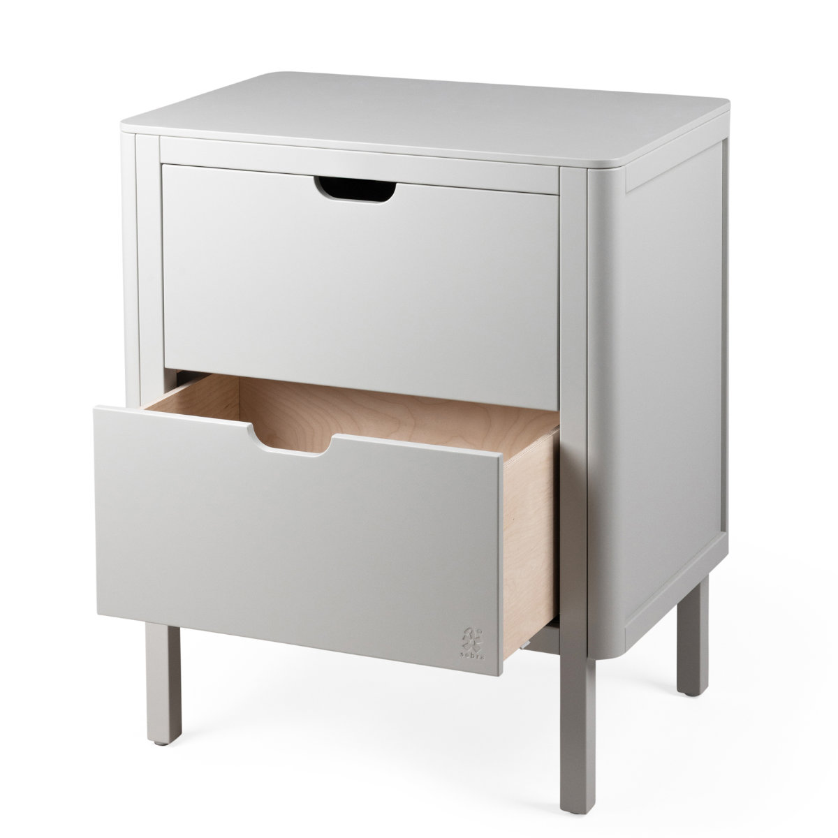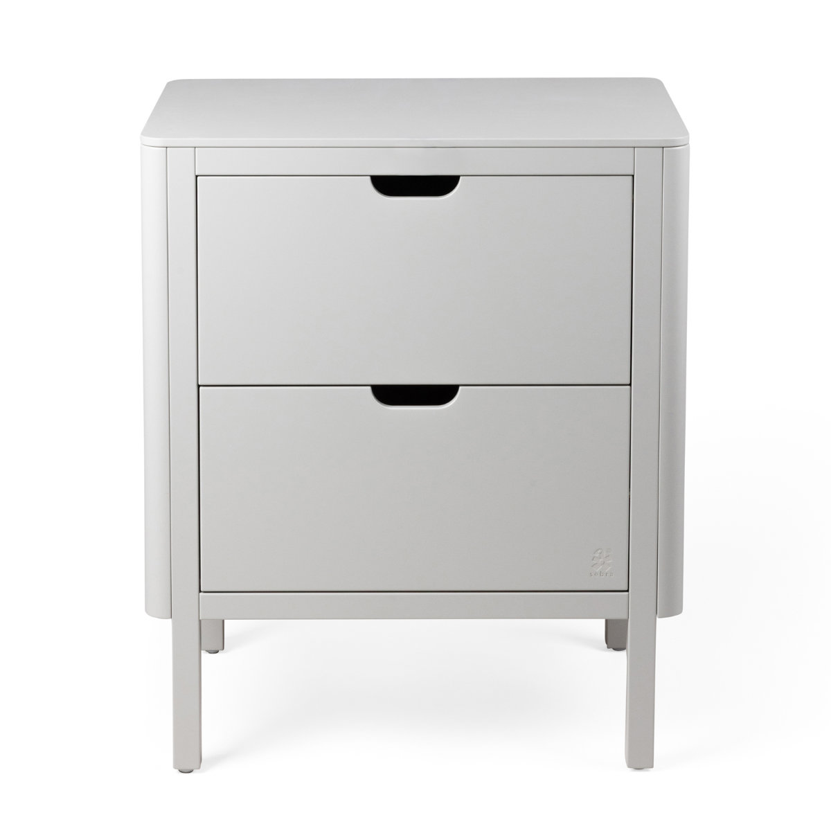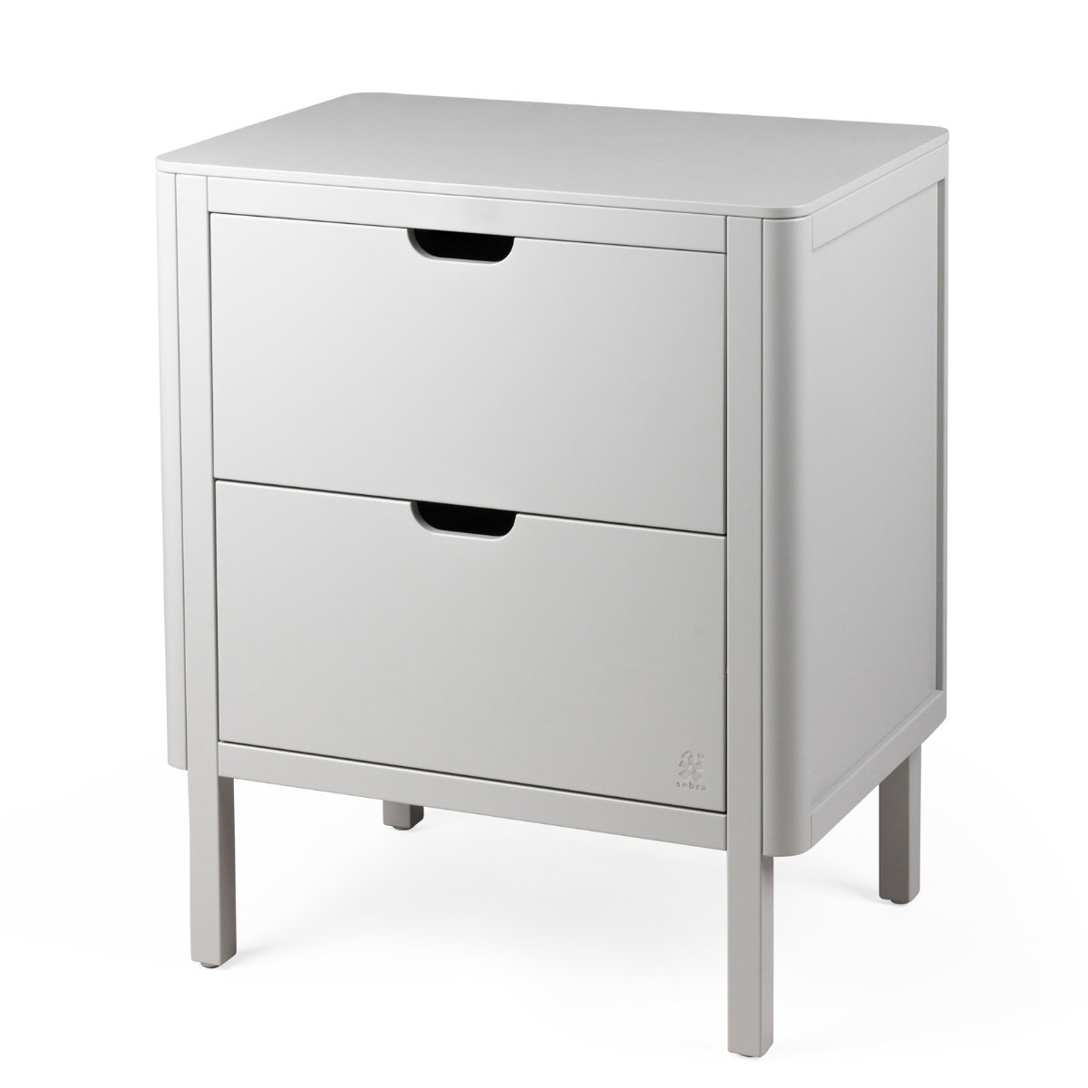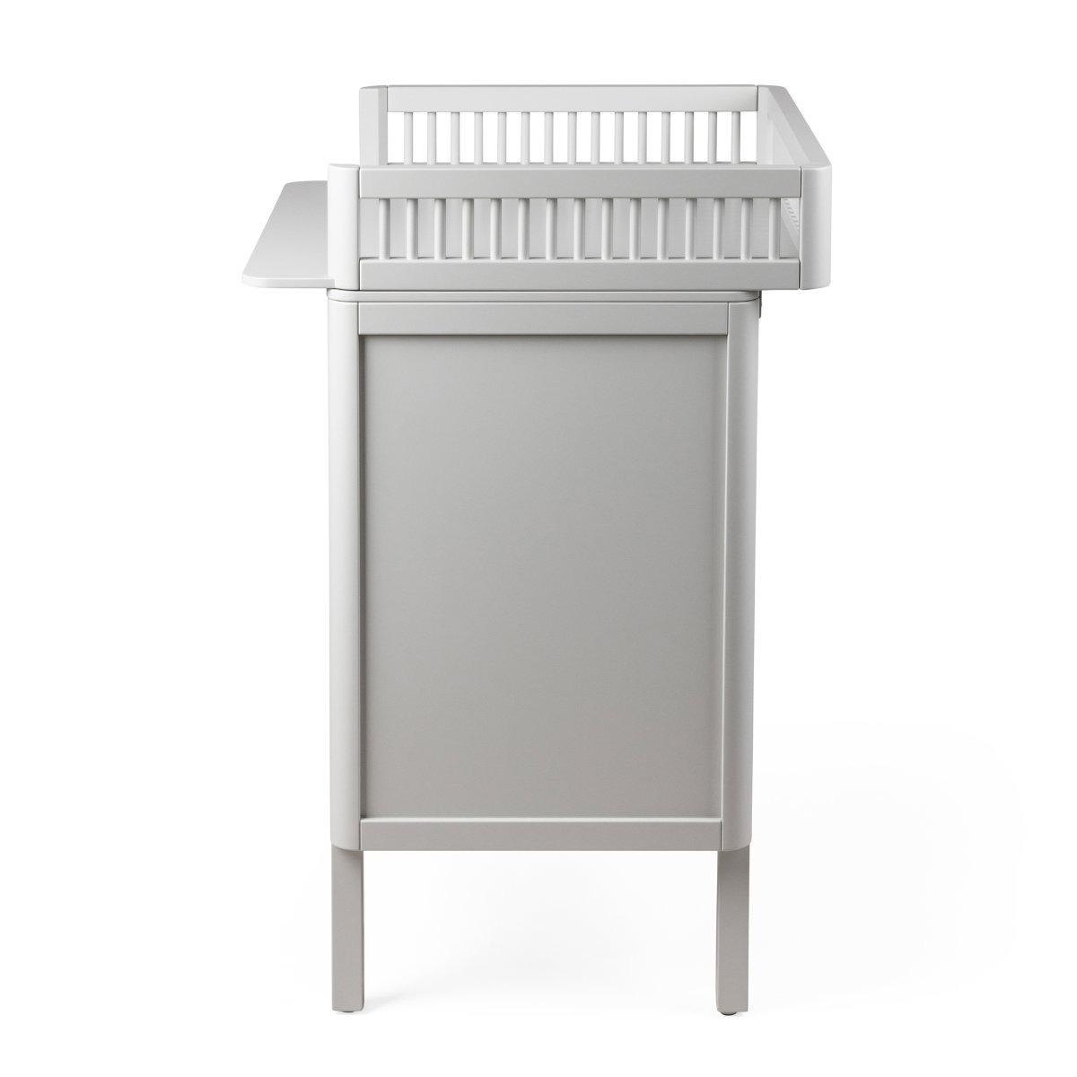 De Sebra commode is een elegant, functioneel en Deens vormgegeven 2-in-1 meubelstuk dat wordt geleverd met een commode, een verschoonblad en respectievelijk twee lades of planken met deuren, in wit of grijs.