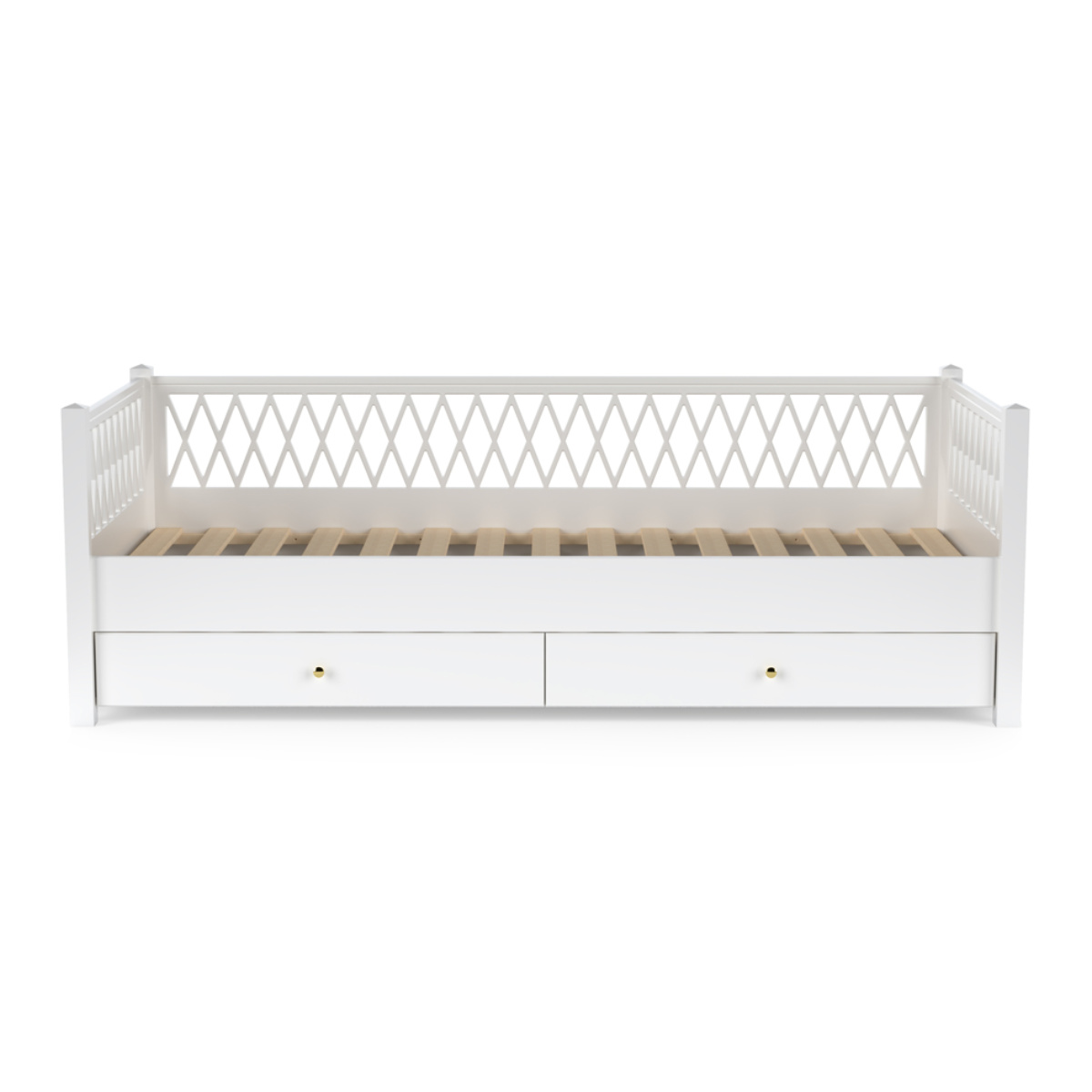 Het Harlequin Daybed heeft al de nodige voorgeboorde gaten om de bevestiging van de ladebedmodule zo eenvoudig mogelijk te maken.