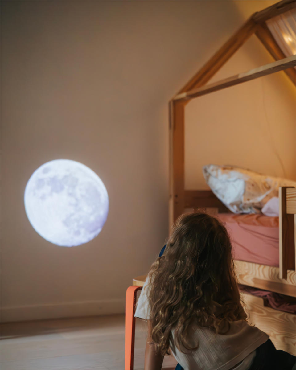 De KIDYSTAR is veel meer dan een nachtlamp – het is een venster naar magische werelden die de verbeelding prikkelen en tegelijkertijd voor een rustgevende sfeer zorgen.