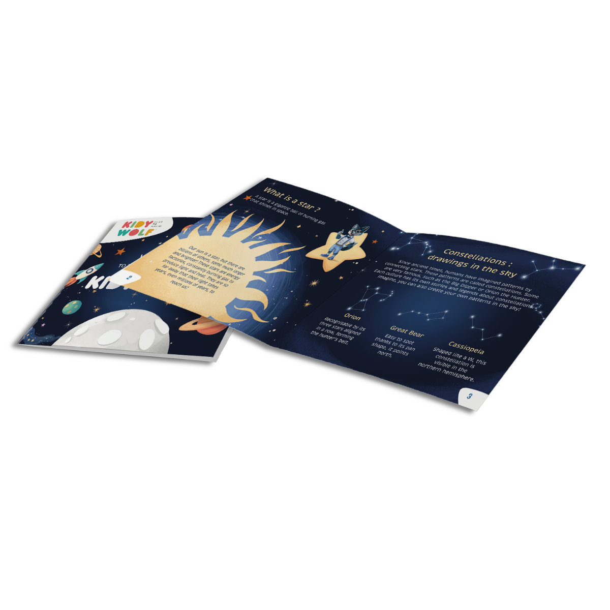 Elk model wordt geleverd met een mooi geïllustreerd boekje vol leuke weetjes over sterren, oceanen of dieren. Zo combineert de KIDYSTAR ontspannende slaaphulp met speels leren – ideaal voor knusse momenten voor het slapengaan.