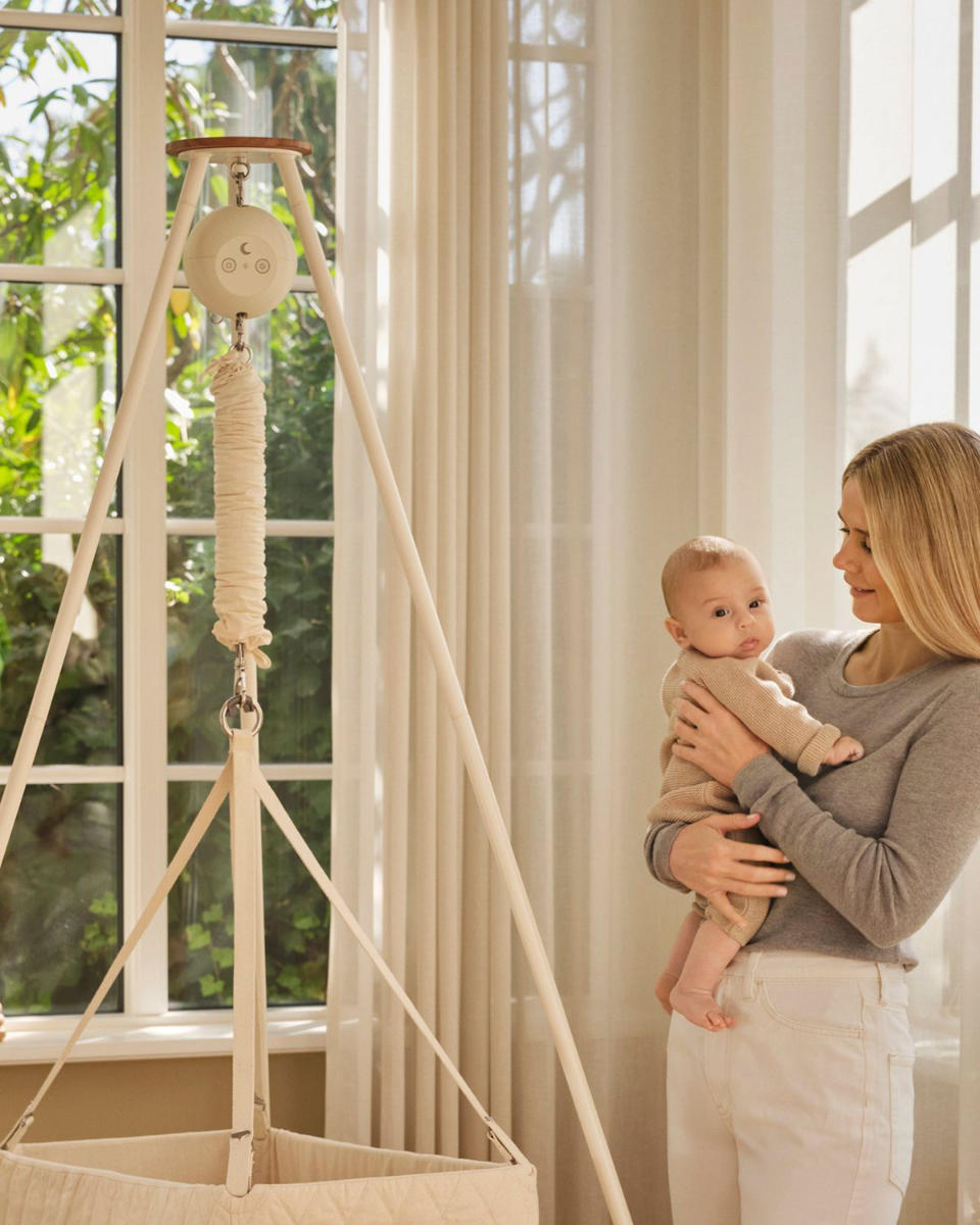 Dankzij de naadloze verbinding met de Moonboon App kun je de motor volledig contactloos starten, de snelheid en duur instellen of kiezen uit drie door slaapexperts ontwikkelde programma’s. Ze ondersteunen het natuurlijke slaapritme van je baby – ideaal voor korte dutjes of langere slaapmomenten.