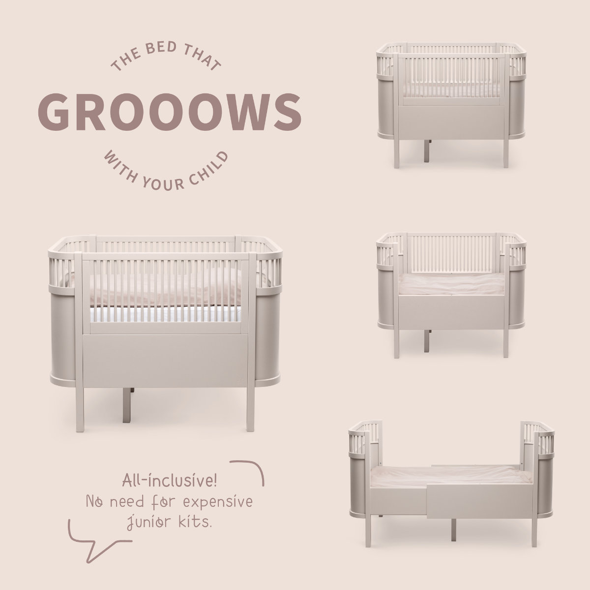 Het Sebra baby/Junior kinderbed geschikt is voor 4 verschillende levensfasen van een kind! Wanneer u het bed gebruikt, kunt u de onderkant van het bedje eenvoudig omhoog zetten, zodat u uw baby eruit en in het bedje kunt tillen zonder uw rug te beschadigen.