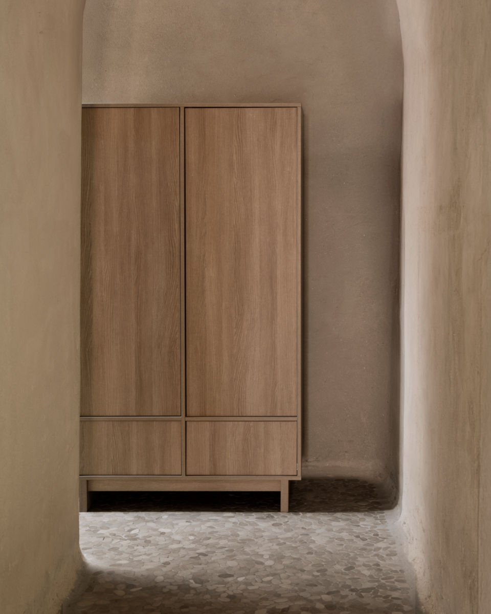 De 2-deurs Kyo kast biedt een doordachte indeling: achter de deuren vind je drie verstelbare legplanken en twee kledingroedes. Onderaan zorgen twee ruime lades voor extra opbergruimte. Het push-to-open systeem en de onzichtbare handgrepen zorgen voor een rustgevende, minimalistische look.