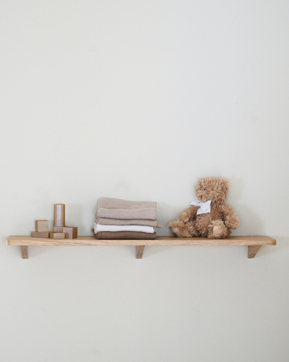 Met de We Are Bitte Wandplank Nature – Eiken haal je een stukje natuur in huis. Het eenvoudige, Scandinavische design past perfect in de kinderkamer, maar staat ook stijlvol in de woon-, slaap- of werkkamer.