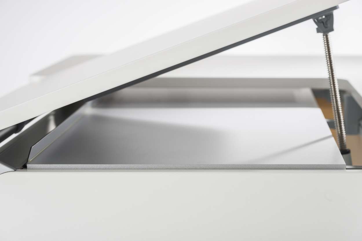 - De ladehoes biedt stof- en privacybescherming wanneer het tafelblad onder een hoek is geplaatst