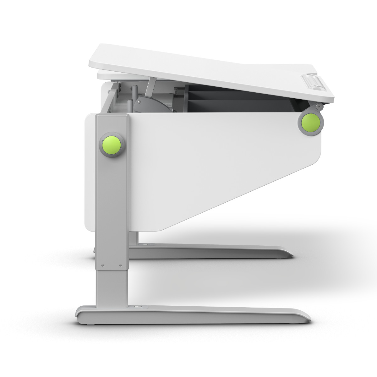 Dankzij de gepatenteerde "Comfort" hoogteverstelling kan de Winner Split Comfort in tien stappen zonder enige moeite van 1,20 m tot 2,00 m lichaamslengte worden ingesteld. De hoogte van het bureau kan dus individueel worden ingesteld van 52 tot 82 cm. Ter vergelijking: de meeste eetkamertafels hebben een hoogte van 72-75cm. Dit betekent dat het bureau voor de kinderen van de molletjes nog hoger kan worden ingesteld.