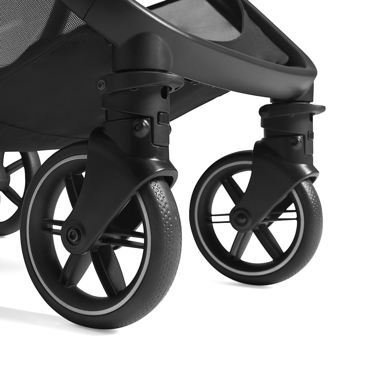 Je kindje rolt soepel over elk wegdek dankzij de comfortabele vierwielvering und lekvrije EVA-wielen. De uitschuifbare, waterafstotende kap met UV-bescherming 50+ biedt veilige beschutting tegen zon en regen. Maar ook aan de ouders is gedacht: de telescopische duwbeugel in luxe lederlook is in 4 hoogtes verstelbaar. Je boodschappen passen gemakkelijk in de XXL-opbergmand en je coffee-to-go is altijd binnen handbereik in de zijdelingse bekerhouder.