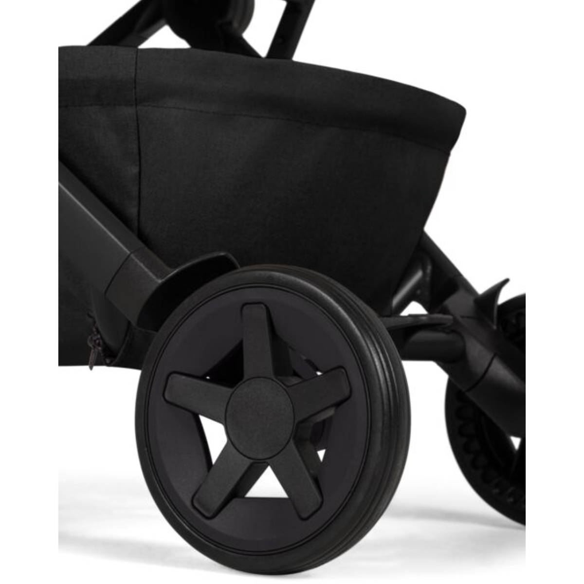 De wielen zijn volledig vernieuwd. Grotere voorwielen in combinatie met verbeterde vierwielvering zorgen ervoor dat je soepel rijdt over kasseien, parkpaden en luchthavenvloeren. De hoge duwstang biedt bovendien voldoende beenruimte voor langere ouders, waardoor comfortabel wandelen gegarandeerd is.