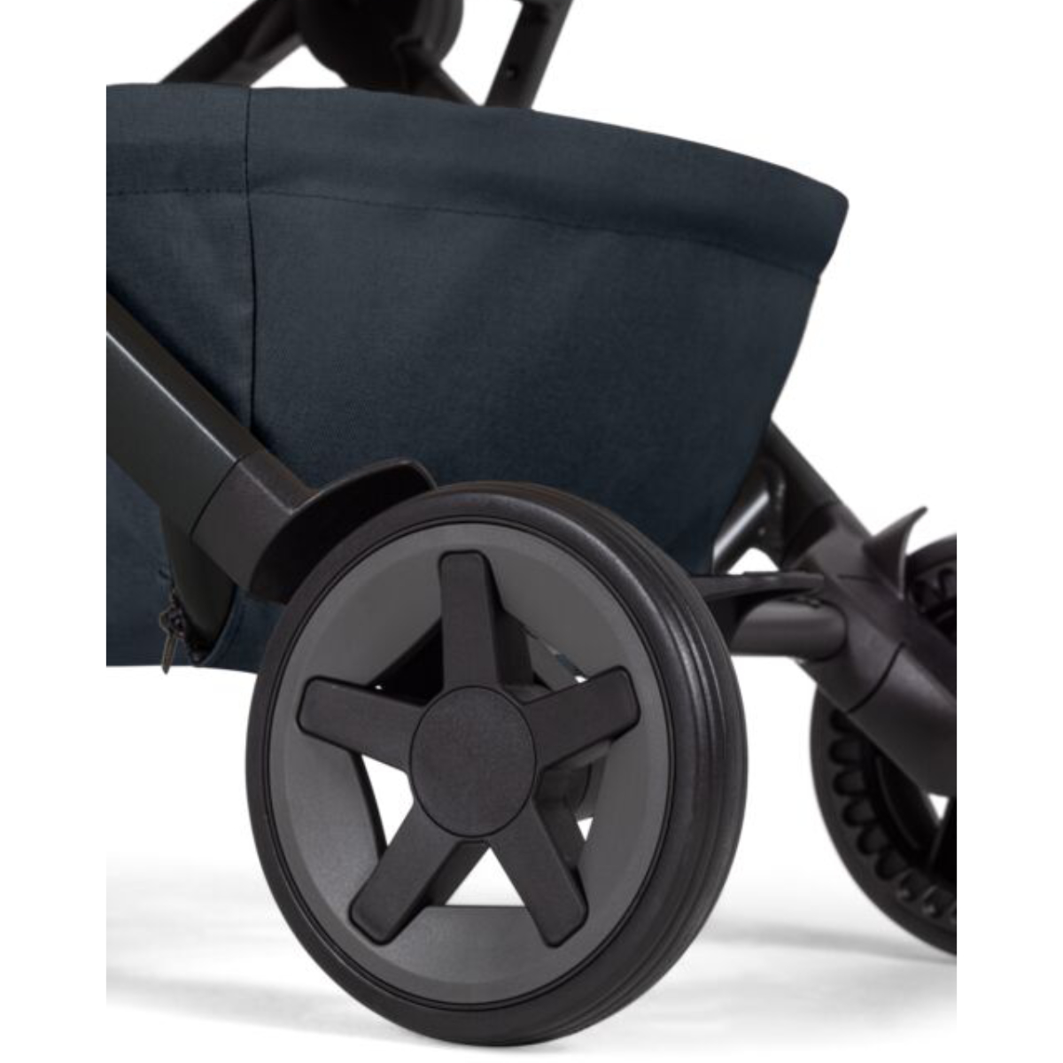 De wielen zijn volledig vernieuwd. Grotere voorwielen in combinatie met verbeterde vierwielvering zorgen ervoor dat je soepel rijdt over kasseien, parkpaden en luchthavenvloeren. De hoge duwstang biedt bovendien voldoende beenruimte voor langere ouders, waardoor comfortabel wandelen gegarandeerd is.