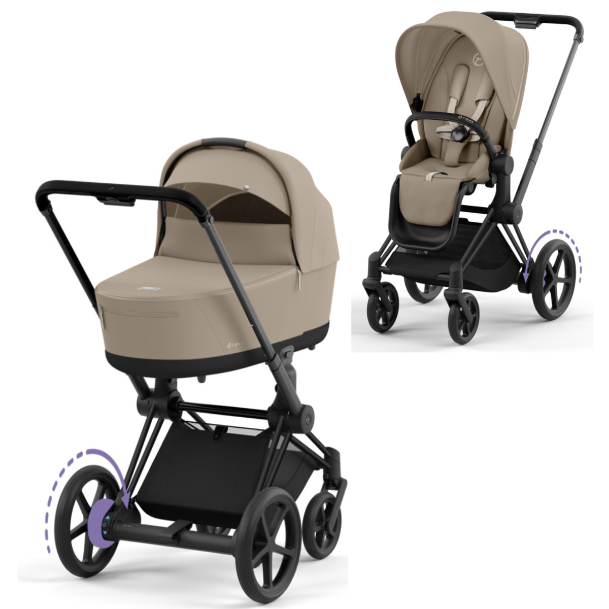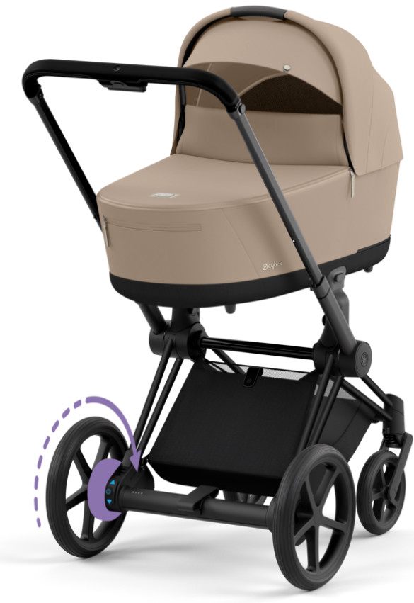 Met de Cybex e-Priam combi kinderwagen komt er een innovatie in kinderwagens op de markt. Na e-scooters en e-bikes, volgt Cybex nu met een e-kinderwagen. De Cybex e-Priam combineert elektrische ondersteuning met een luxueus design. Het frame is verkrijgbaar in vier elegante kleuren. Afhankelijk van jullie behoeften kan je tot vier verschillende hulpstukken (Lux reiswieg, Lite Cot, Cloud T i-Size en de Priam ziteenheid) op dit frame bevestigen.