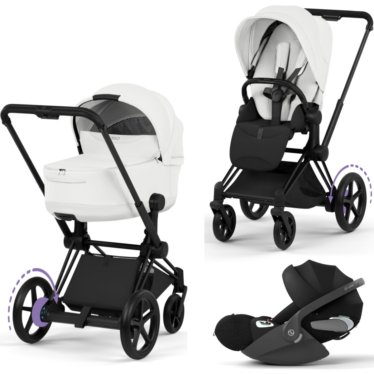 Met de Cybex e-Priam 5 Style Kinderwagen Set 3 in 1 haal je een van de meest geavanceerde travelsystemen op de markt in huis. De combinatie van de elektrisch ondersteunde e-Priam kinderwagen en de Cybex Cloud T i-Size autostoel zorgt voor ultiem comfort, veiligheid en gebruiksgemak – vanaf de eerste dag.