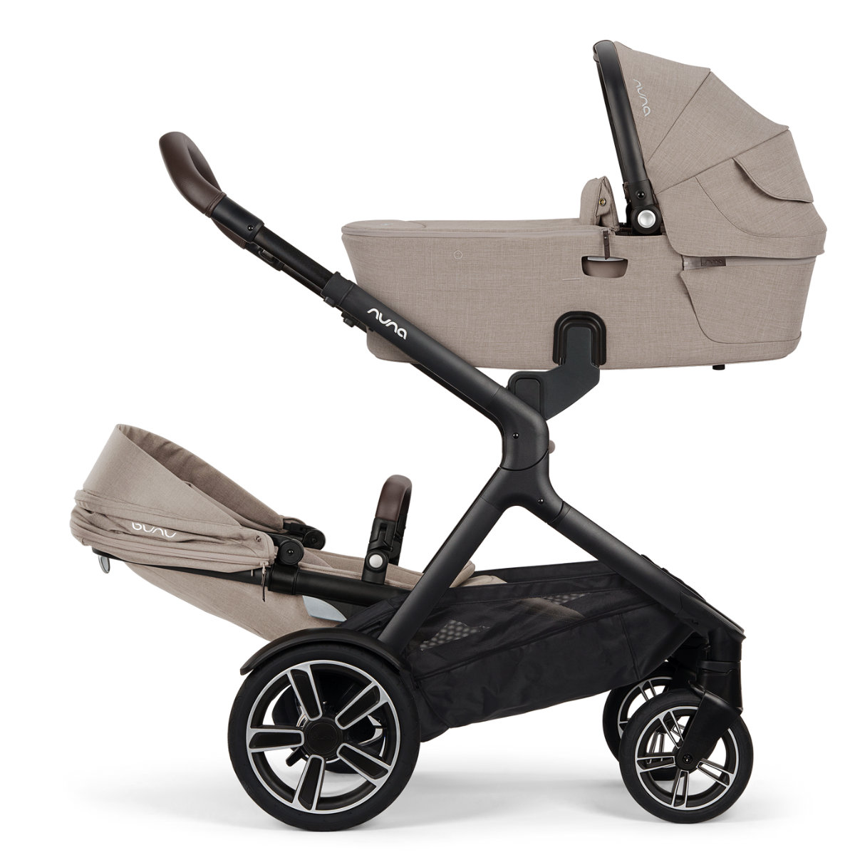 Waarom zou een kinderwagen maar één functie hebben? Met de Nuna DEMI Next kinderwagen krijg je meerdere oplossingen in één product. Vandaag met reiswieg, morgen met zitje, en in de toekomst ook als kinderwagen voor broertjes/zusjes of voor een tweeling – de DEMI Next kan het allemaal. Je kunt ook een optioneel rider board of een extra zitje voor een broertje of zusje toevoegen, om indien nodig twee kinderen comfortabel te vervoeren.