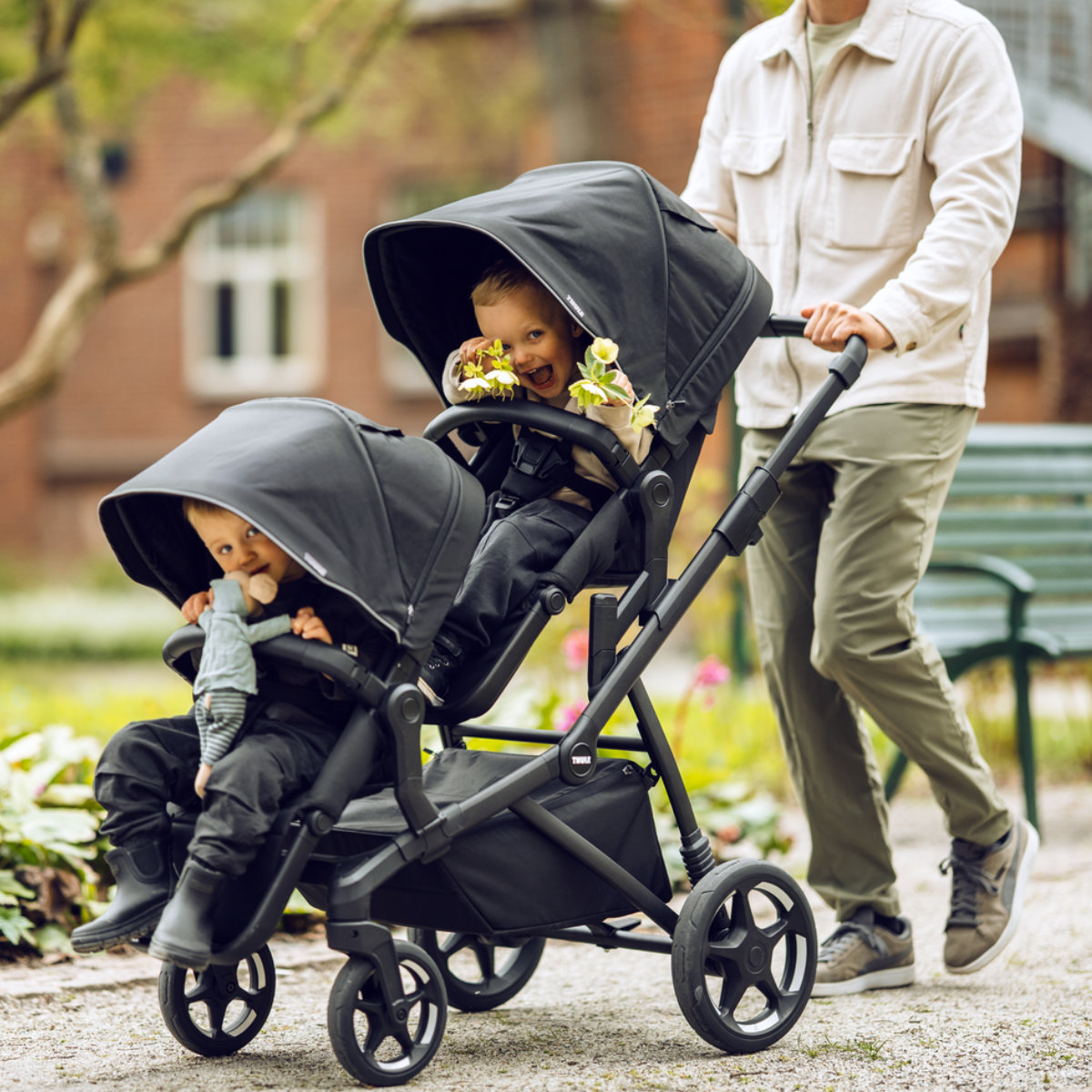 Wat de Thule Sleek 2 echt bijzonder maakt, is zijn modulaire karakter. Zodra je kind groter wordt, wissel je eenvoudig van reiswieg naar het omkeerbare zitje. En mocht je gezin in de toekomst uitbreiden, dan bouw je deze kinderwagen zonder moeite om tot een duo- of geschwisterwagen. De hoogwaardige 4-wiel vering en lekvrije banden zorgen daarbij voor een soepel rijgedrag op elke ondergrond.