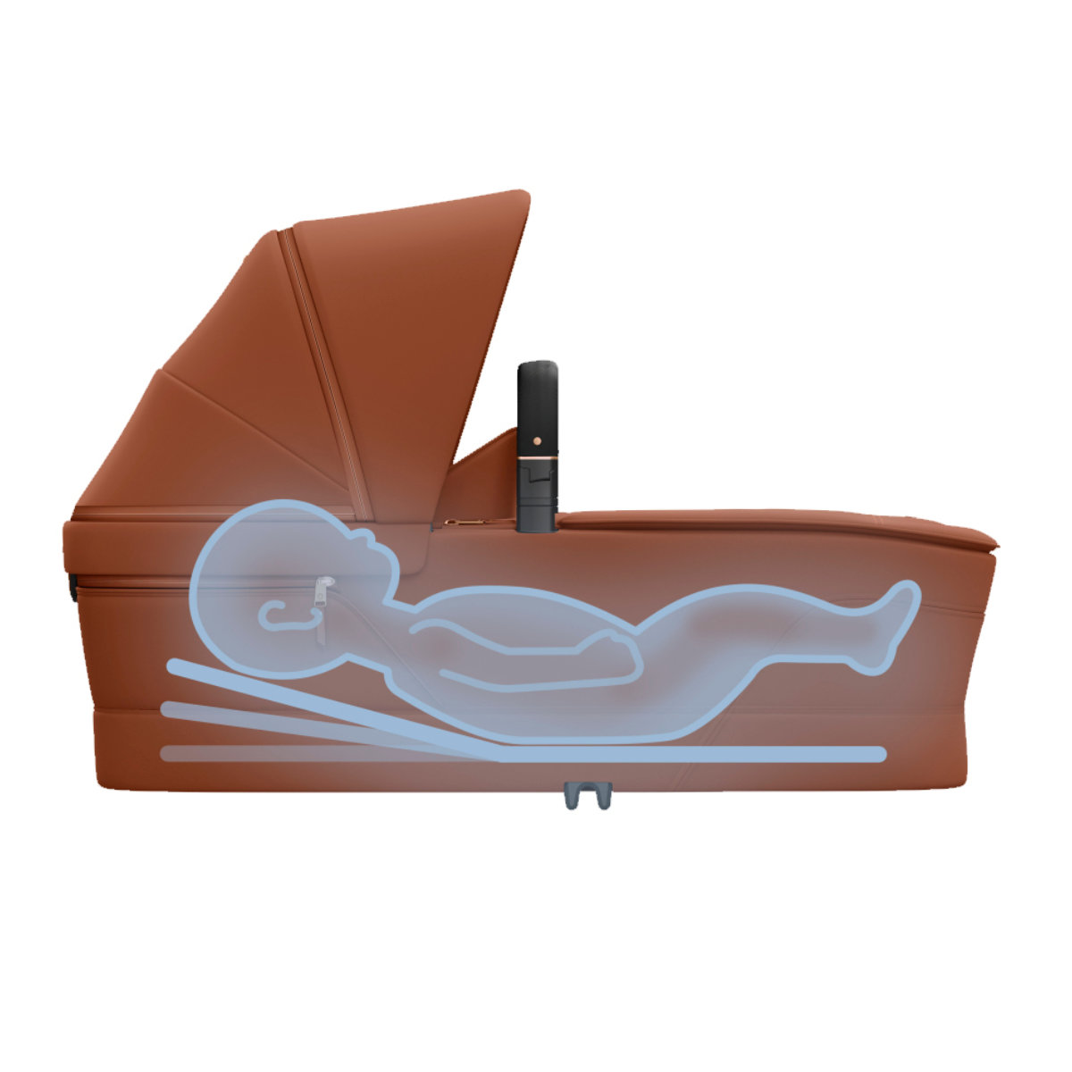 - Overstap: Wanneer de reiswieg te klein wordt (ca. vanaf 6 maanden of 9 kg), schakel je over naar de Fame Cabin zitting – eerst in de platte ligstand tot je kind zelfstandig kan zitten.