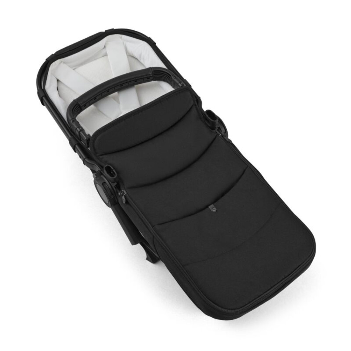 De reiswieg is bedoeld voor pasgeboren baby’s tot ongeveer 6 maanden. In deze periode ligt je kindje volledig plat – de meest ergonomische houding voor een gezonde ontwikkeling van rug en nek. De bekledingsset zorgt hierbij voor: