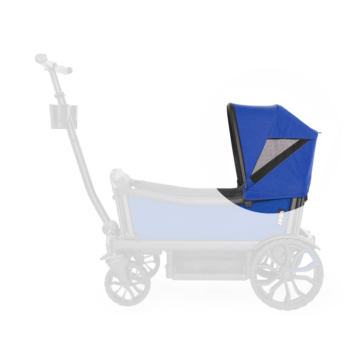 De verstelbare Veer zonnekap wordt snel en intuïtief aan het frame van de Cruiser bolderkar bevestigd en kan gemakkelijk worden opgevouwen en neergeklapt. Je kan tot twee luifels per cruiser monteren - één over elke zitplaats. Dankzij het kijkvenster kan je je kinderen zien en verborgen magneten zorgen ervoor dat het venster omhoog blijft staan.
