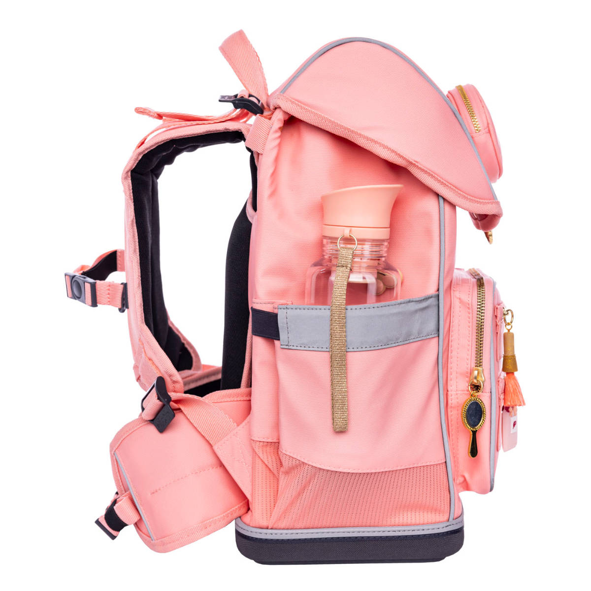 - Ergonomisch Ontwerp: De rugzak is ontworpen met het oog op de gezondheid en het comfort van het kind. De gewatteerde en verstevigde, verstelbare heupriem verplaatst 50% van het gewicht van de rugzak van de schouders naar het bekken, waardoor de rug van je kind ontlast wordt. Dit is vooral belangrijk omdat kinderen vaak zware boeken en materialen voor school moeten dragen.