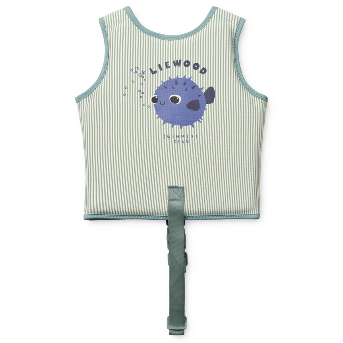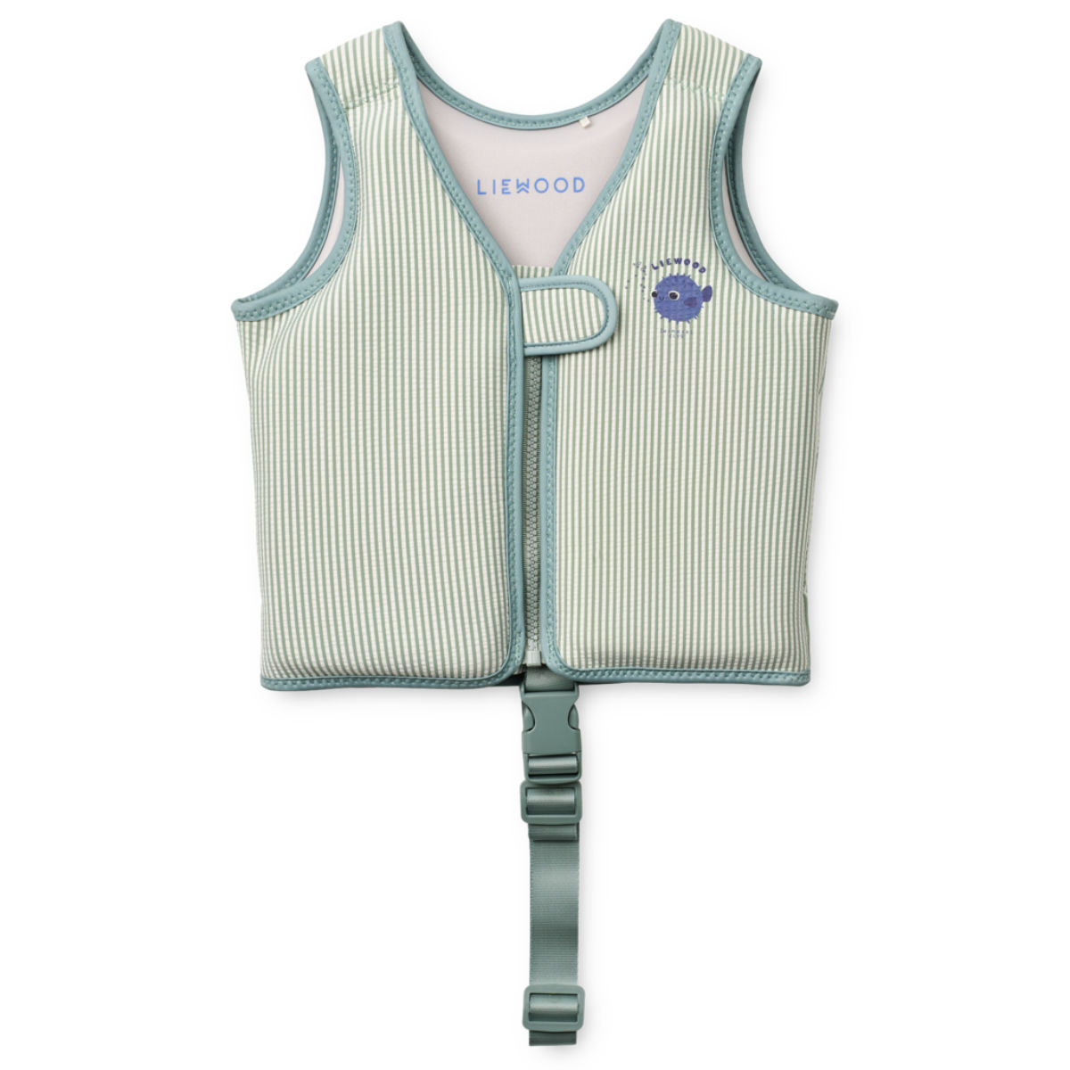 Het Liewood Dove Seersucker zwemvest is een comfortabele en veilige zwemhulp voor kinderen die hun eerste stappen in het water zetten.