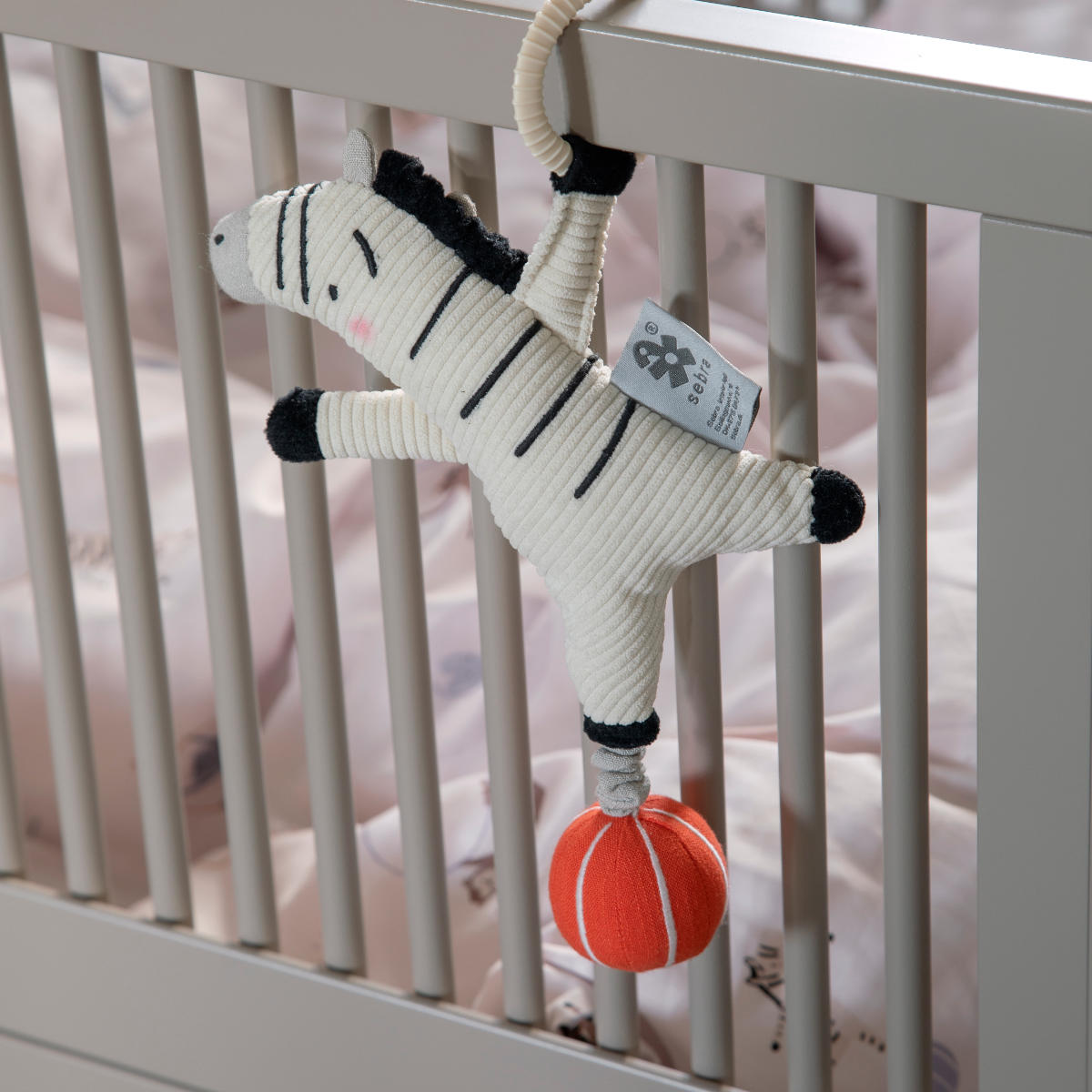 Dit muzikale muziekdoosje van Sebra is gemaakt van verschillende textielsoorten en heeft een geribbelde C-ring, zodat je het perfect kunt bevestigen aan een activiteitenboog, autostoel of wandelwagen. Trek aan de kegel op de buik van de olifant en jij en je baby kunnen luisteren naar de klanken van het rustgevende slaapliedje van Brahms. Het 23 cm hoge muzikale trekspeeltje is ideaal om een gezellige en stemmige sfeer te creëren in de kamer van je baby bij het slapengaan. Het is ook gemakkelijk mee te nemen voor onderweg en zorgt voor een gevoel van veiligheid als het kind in een nieuwe omgeving slaapt.