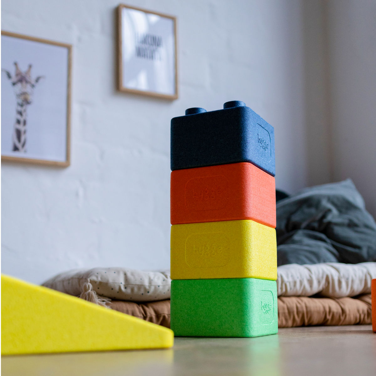 Bygge-bouwstenen staan voor duurzaamheid en milieuvriendelijkheid. Het gebruikte geëxpandeerde polypropyleen (EPP) is niet alleen licht en stabiel, maar ook milieuvriendelijk: Het is 100% recyclebaar, speeksel- en waterbestendig, evenals UV-bestendig. Vrij van schadelijke toevoegingen, vergezelt het jou en je omgeving zonder zorgen.